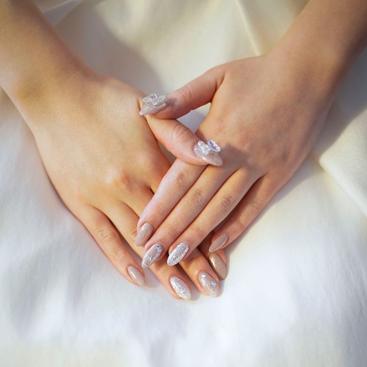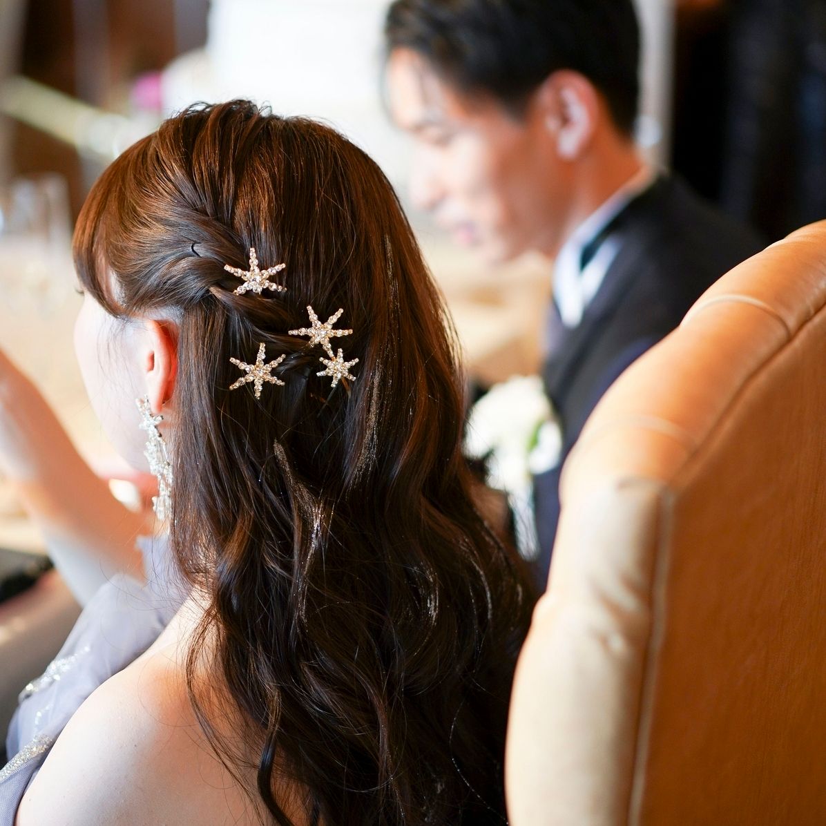 カラードレスの際はキラキラのピアスを着用しています。大振りのアクセサリーはしっかり目立ちますし、写真映えもしました。