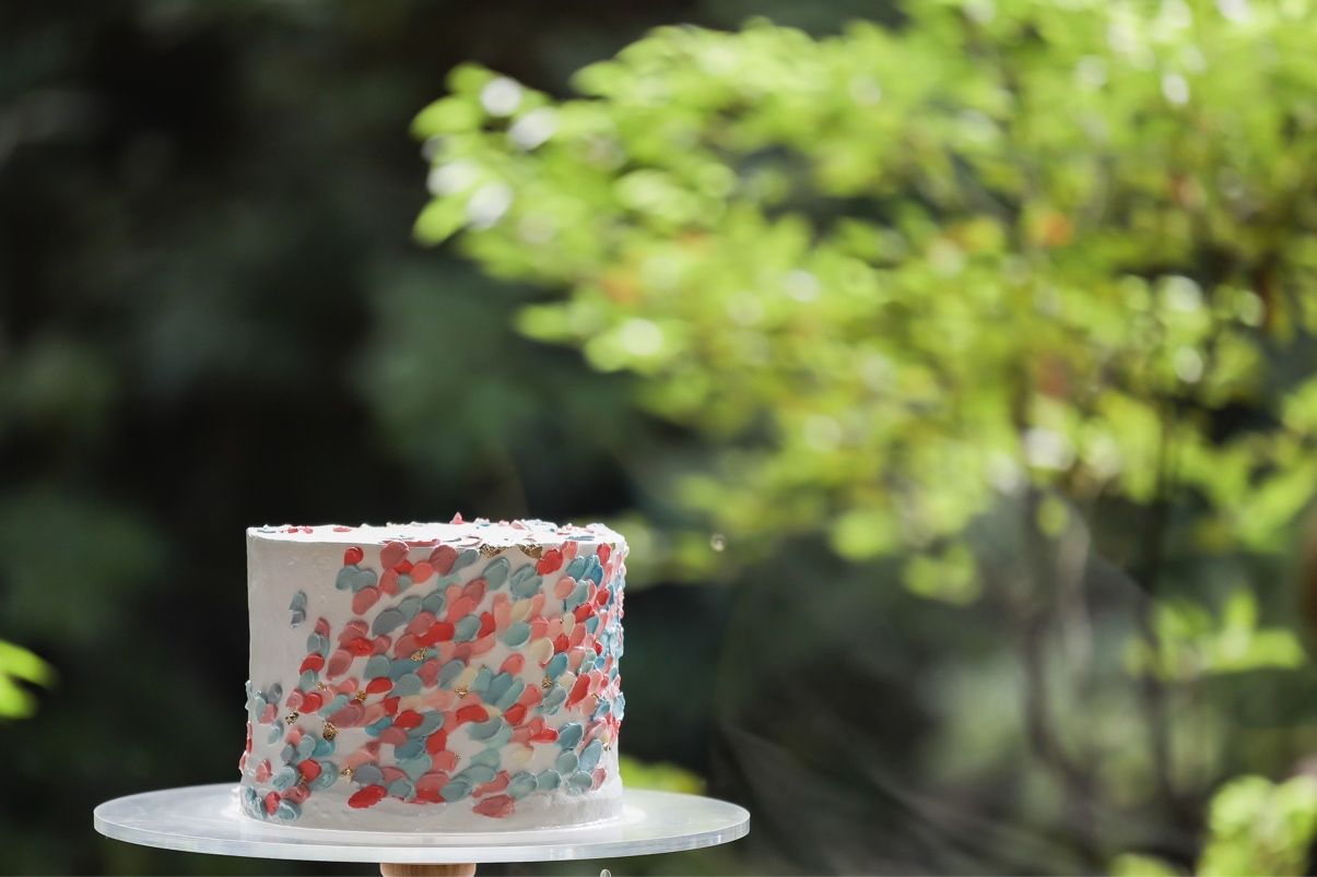 ケーキには、ピンク、水色、ゴールドといった可愛くポップな夏らしさがだせるデザインにしました。