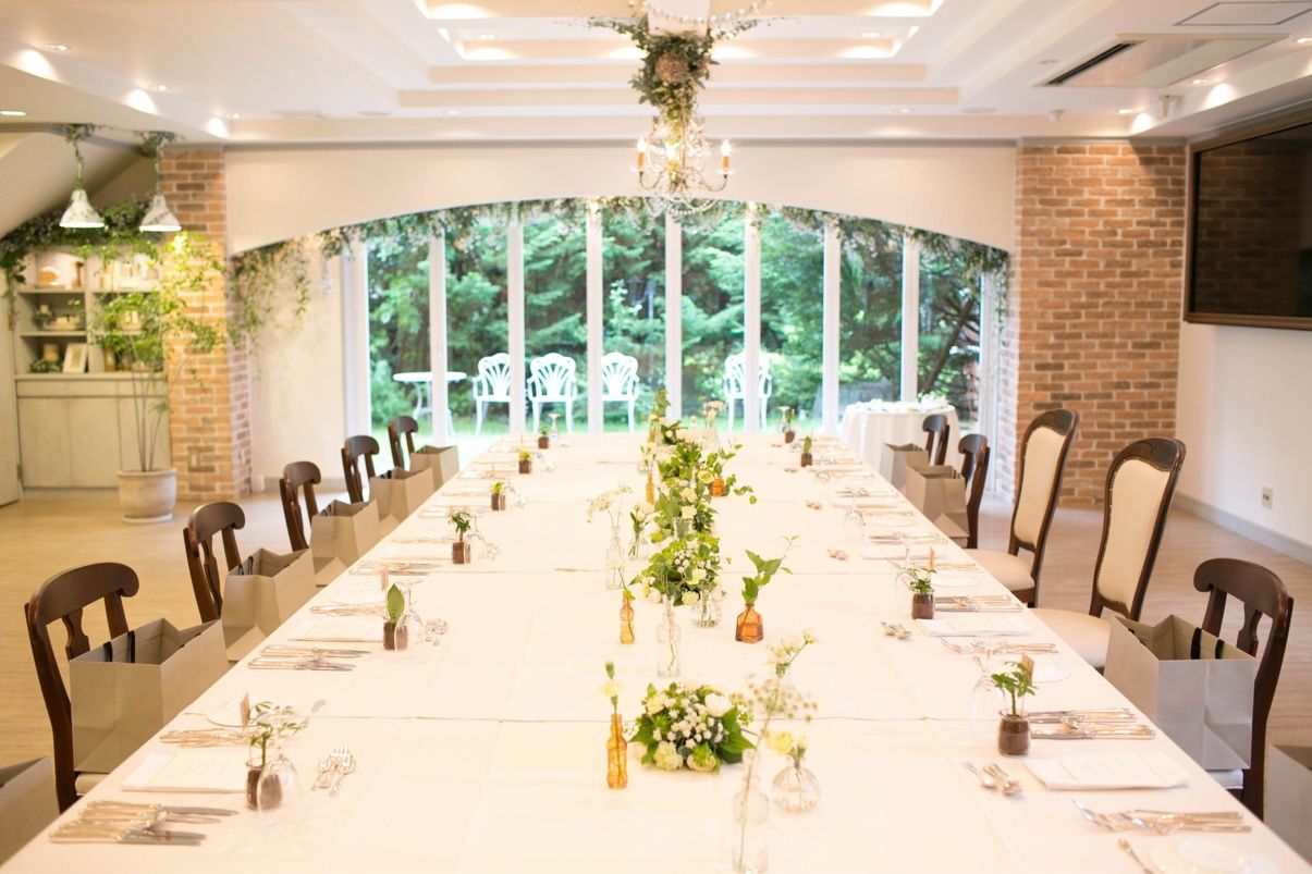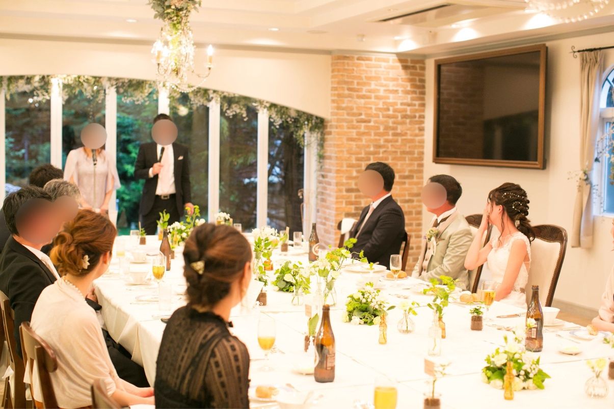 せっかく来てくださるのにお話できないのは寂しすぎるので、距離の近さがメインでした。ゲストは少人数で、披露宴の際は長机を繋げて一つの机にしてもらい、ゲストと私たち全員で囲みました。