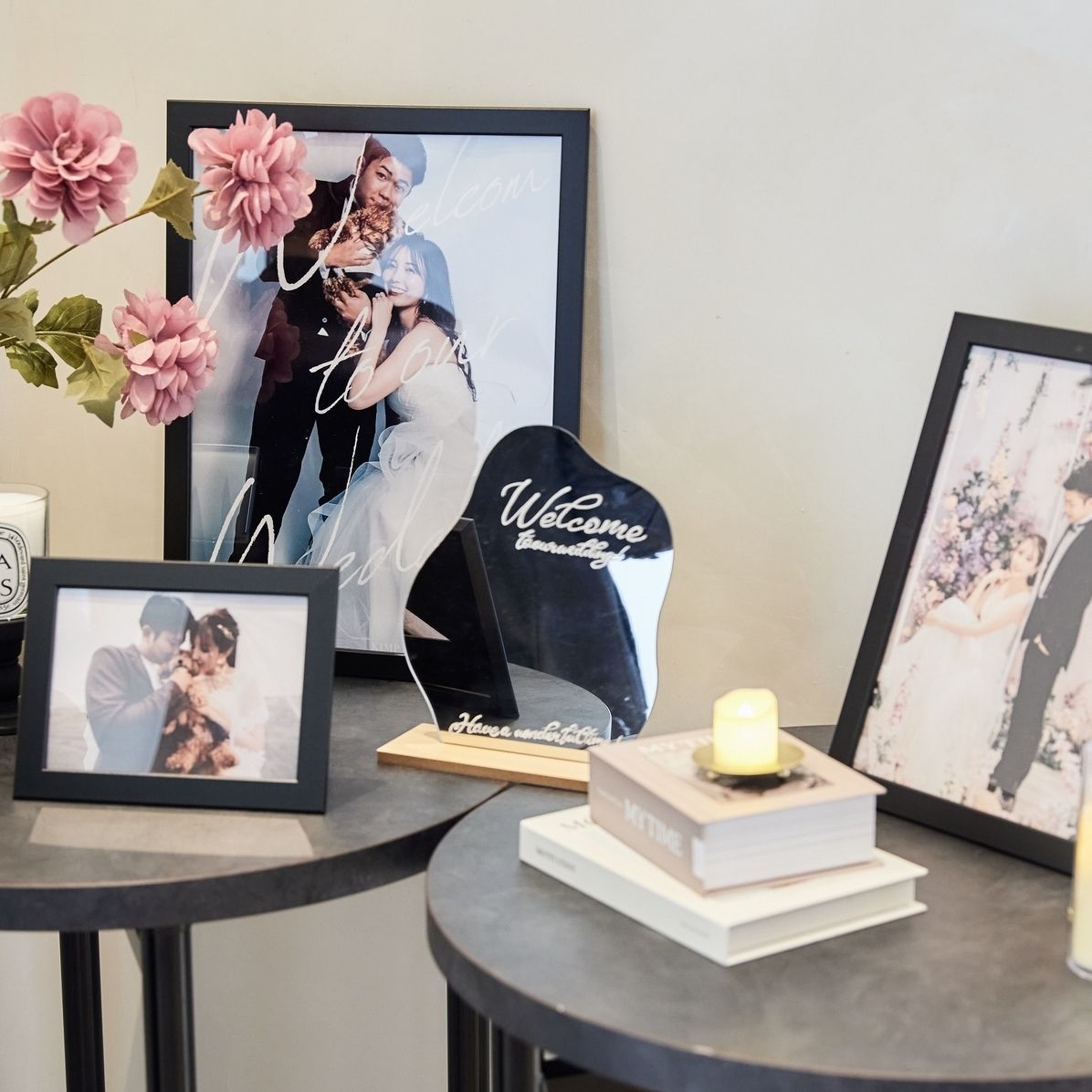 ウェルカムスペースとペーパーアイテムはイメージ通りにしたかったので、ほとんど手作りしています!モノトーン調の落ち着いた雰囲気にしました。