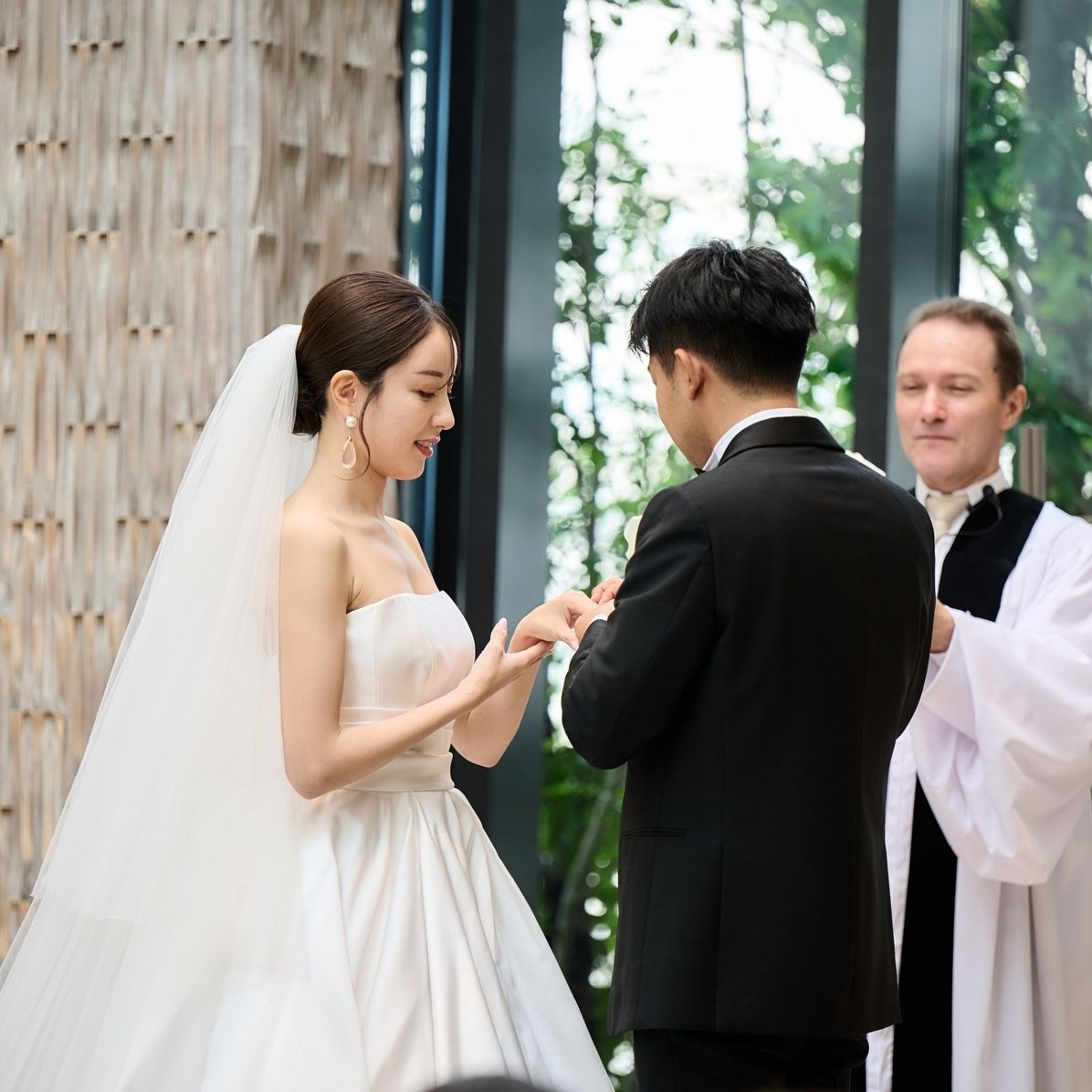 チャペルの天井が高く開放感があり、光の入り方が最高でした。大理石の床の反射で映るドレスも綺麗なので素敵な写真が残せました。