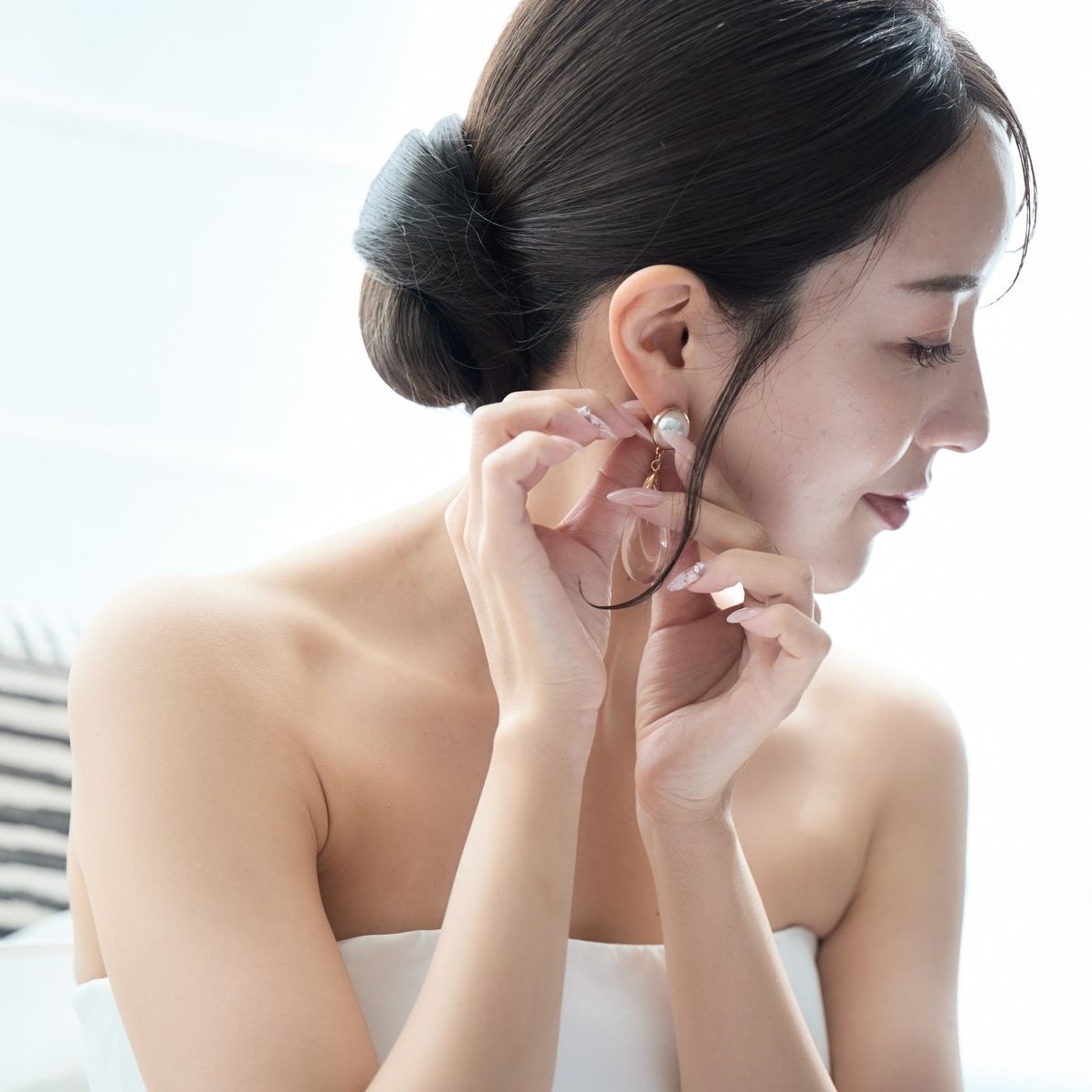 挙式はシンプルシニヨンにし、披露宴はパールを足しました!