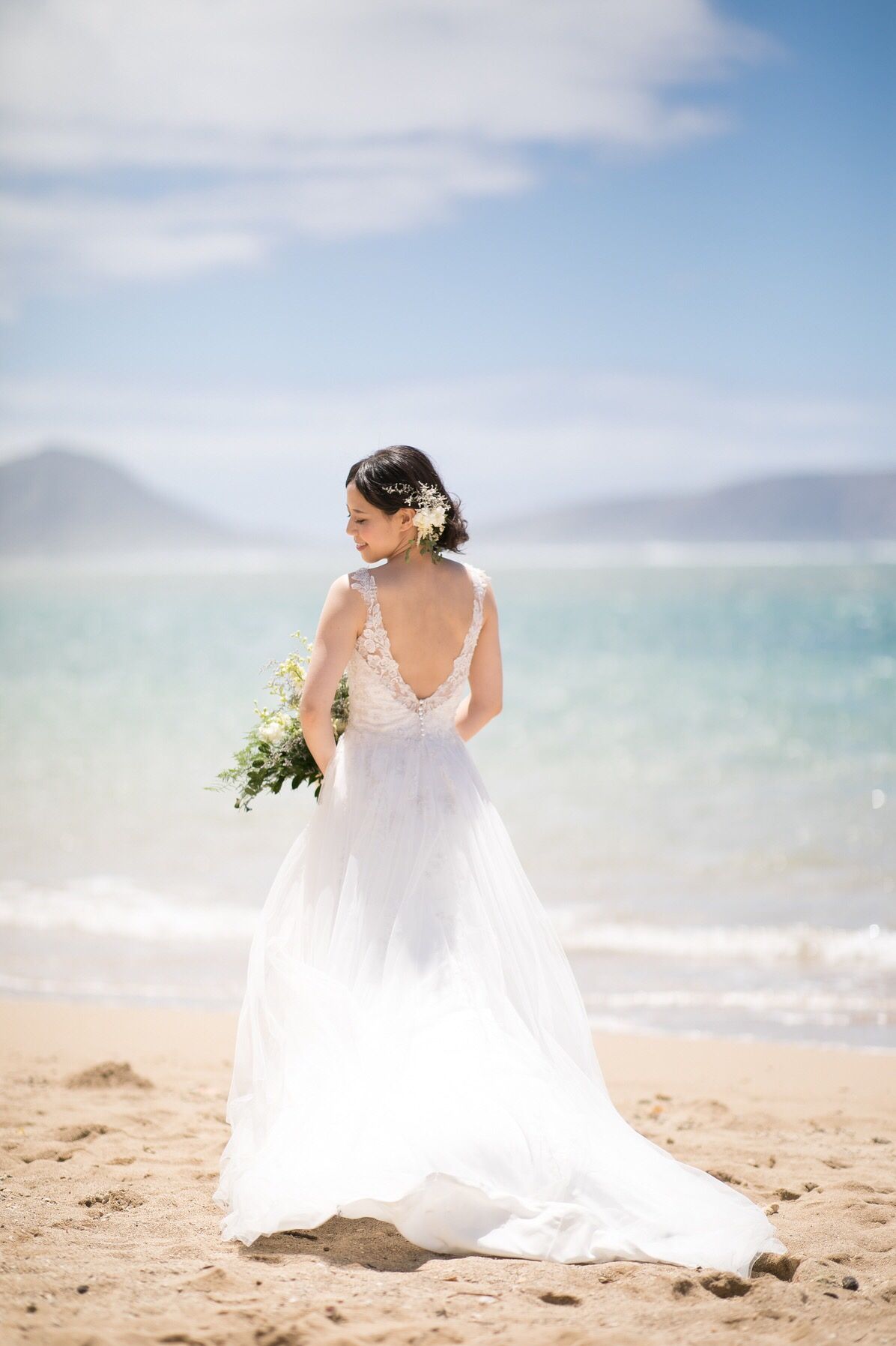 大人っぽい柄のレースや生地の色味、シンプルに見えて、後ろは大きくあいた背中のデザインなど気に入って決めました。帰国後にpartyをしようと思っていたので、レンタルではなく買うことにしました。