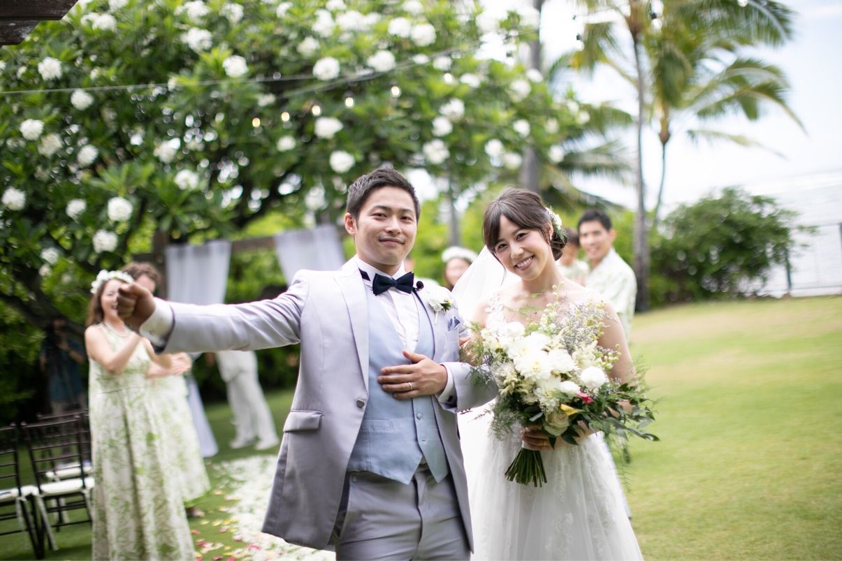 わたしが式を挙げた時期は、お庭のプルメリアが満開で、その木でセレモニーを行うことができました。邸宅を貸し切ることができ、プライベート感があり、海と木々の自然を感じられる素敵な式場です。