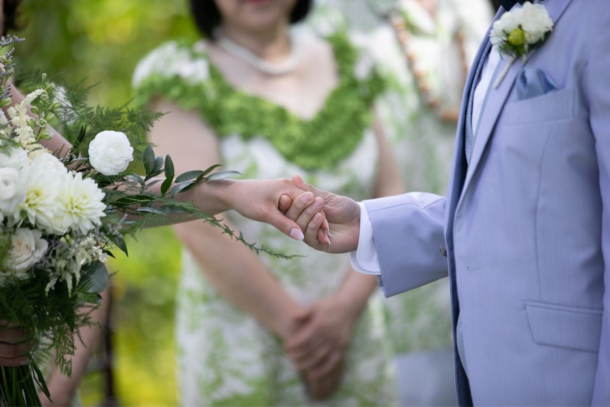 ムームーレインボーという、ワイキキにあるムームーレンタルのお店で、夫婦でお揃いの衣装を選びました。参列者にもグリーンのムームーを着てもらい、色がかぶらないようにピンクの模様を選びました。ウェディングドレスとはまた違う、ハワイならではの雰囲気を味わえて思い出になりました。