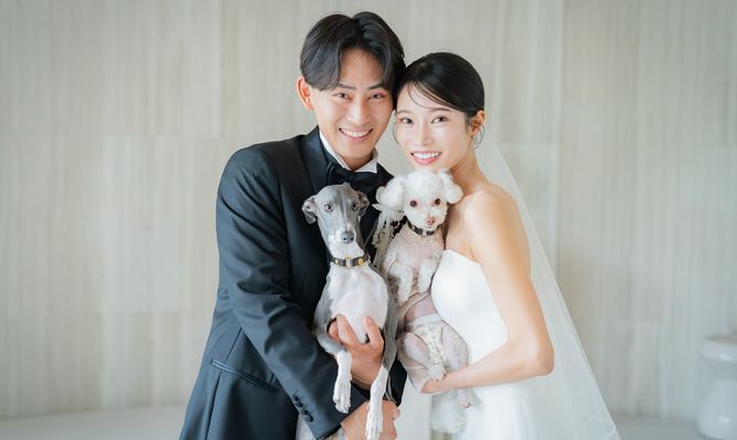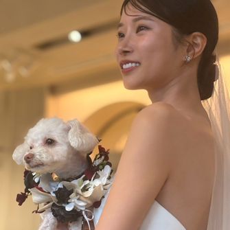 披露宴会場にも抱っこで参加でき、ガーデンにも一緒に入れて、さらにペットシッターさんが付きっきりで見てくださるので“ただ参加する”のではなく、わんこ達が無理のない範囲で楽しみながら、自由に参加できる点に魅力を感じています。