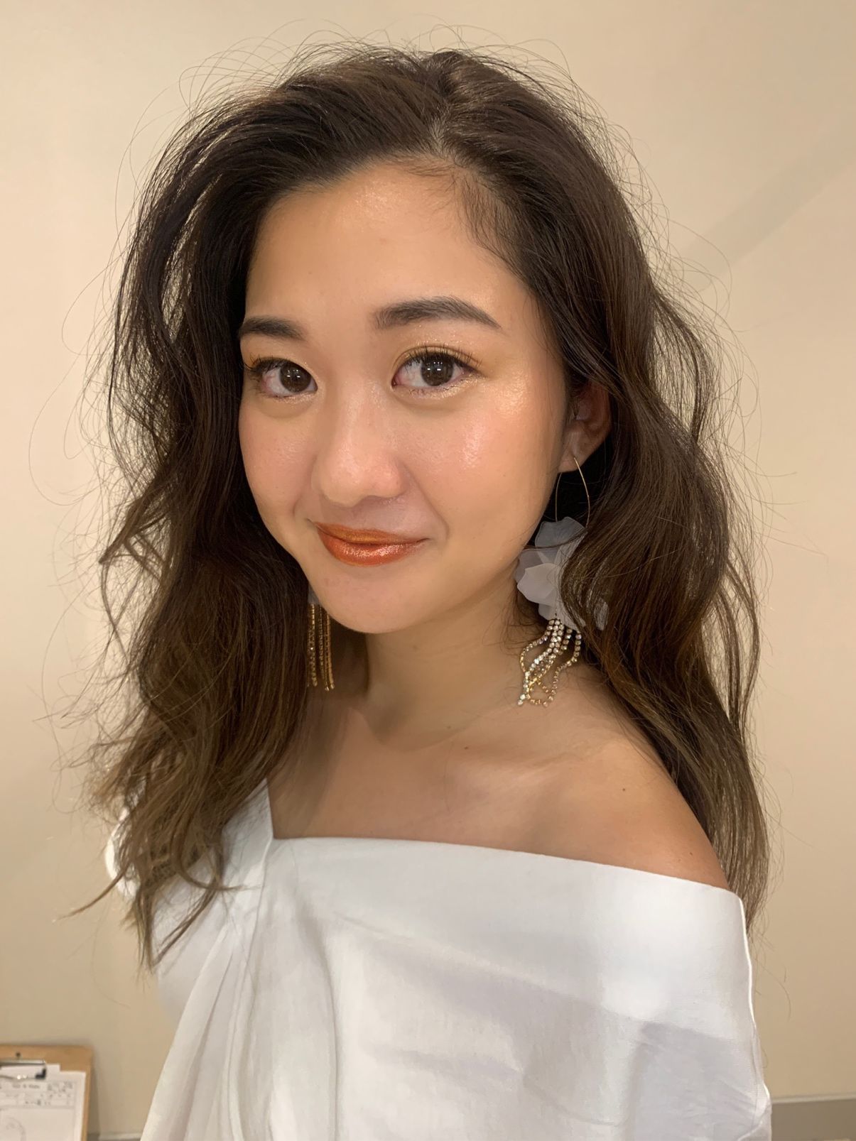 ヘアメイクはMikaさんと相談しながらお任せで頼みました!自分らしさを大切に、似合うヘアメイクをしてもらいました。
