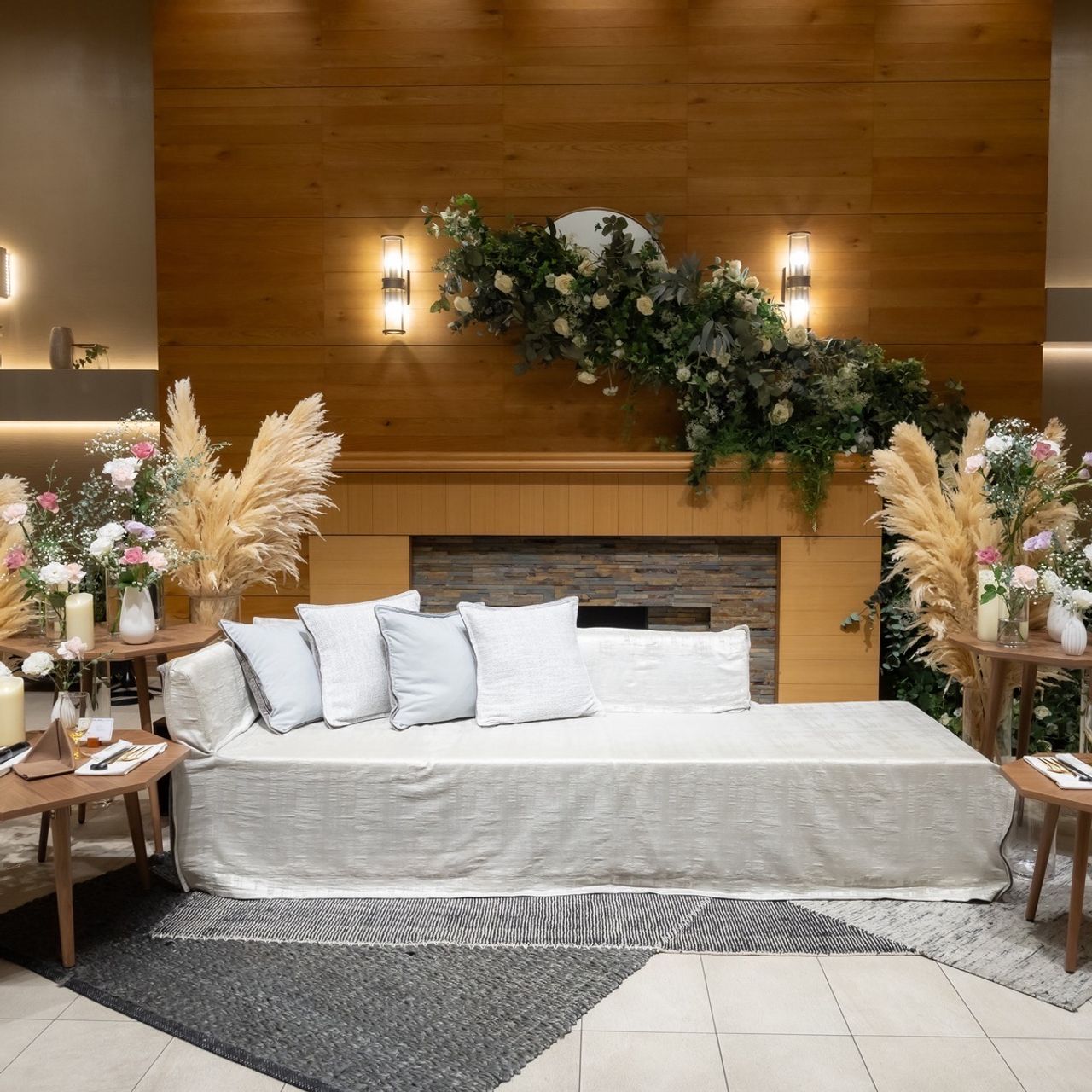せっかく自分が気に入って着ているドレスがテーブルで隠れてしまうのが嫌で高砂はソファスタイル一択でした。