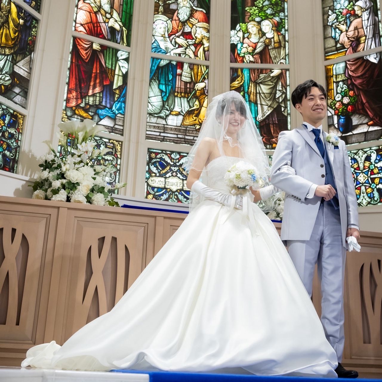 アニヴェルセル みなとみらい横浜は式場見学1件目でしたが、教会のステンドグラスがとても綺麗で「ここのロイヤルブルーのバージンロードを歩きたい!」と思いました。