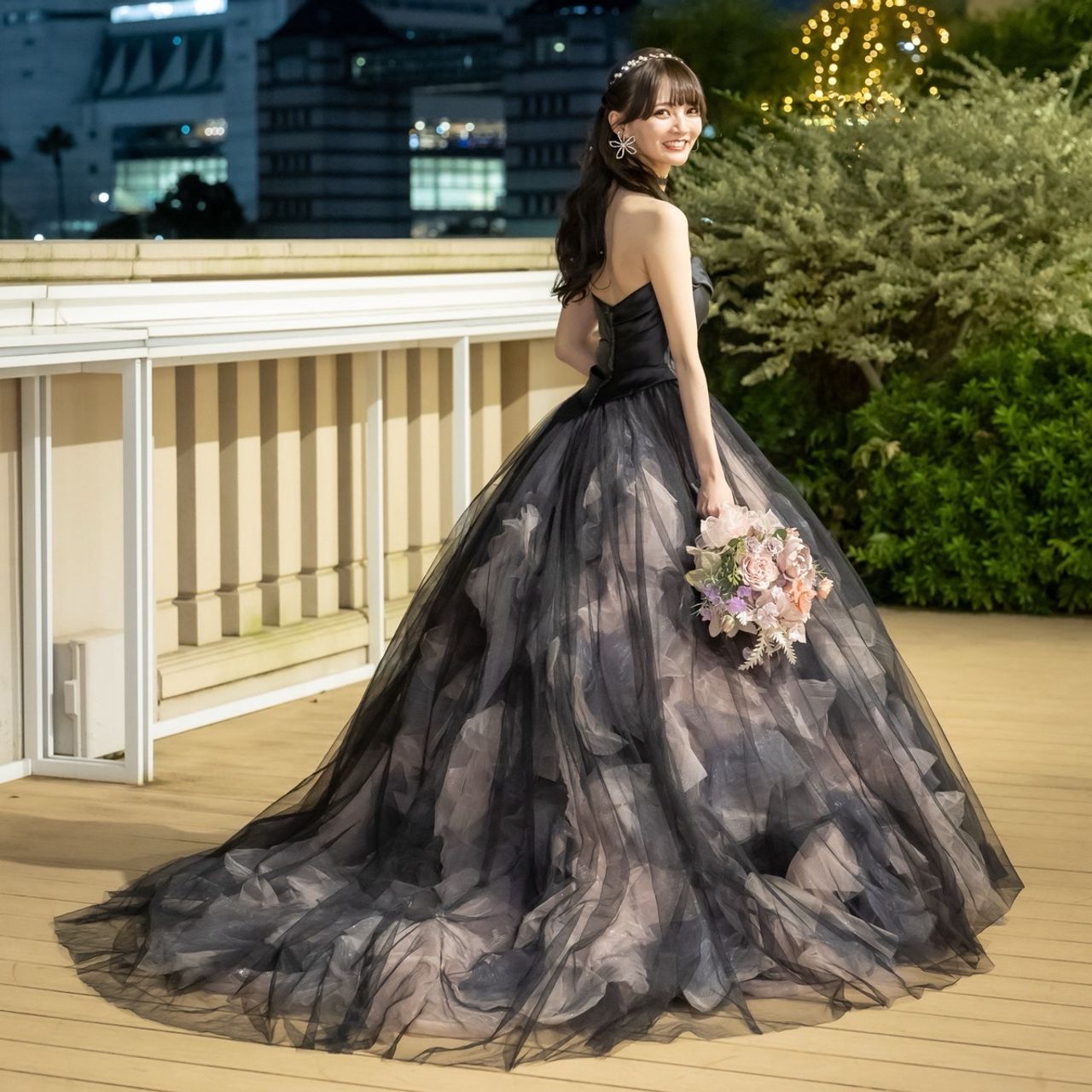 ナイトウェディングだったこともありブラックドレスは興味があったのですが、王道の可愛らしい色のドレスも捨てがたく悩んでいたところ担当の方にお薦めしていただいたのがこのドレスです。