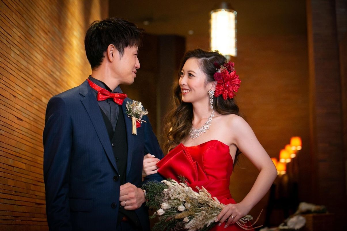 真っ赤で大人っぽい雰囲気のカラードレスです。