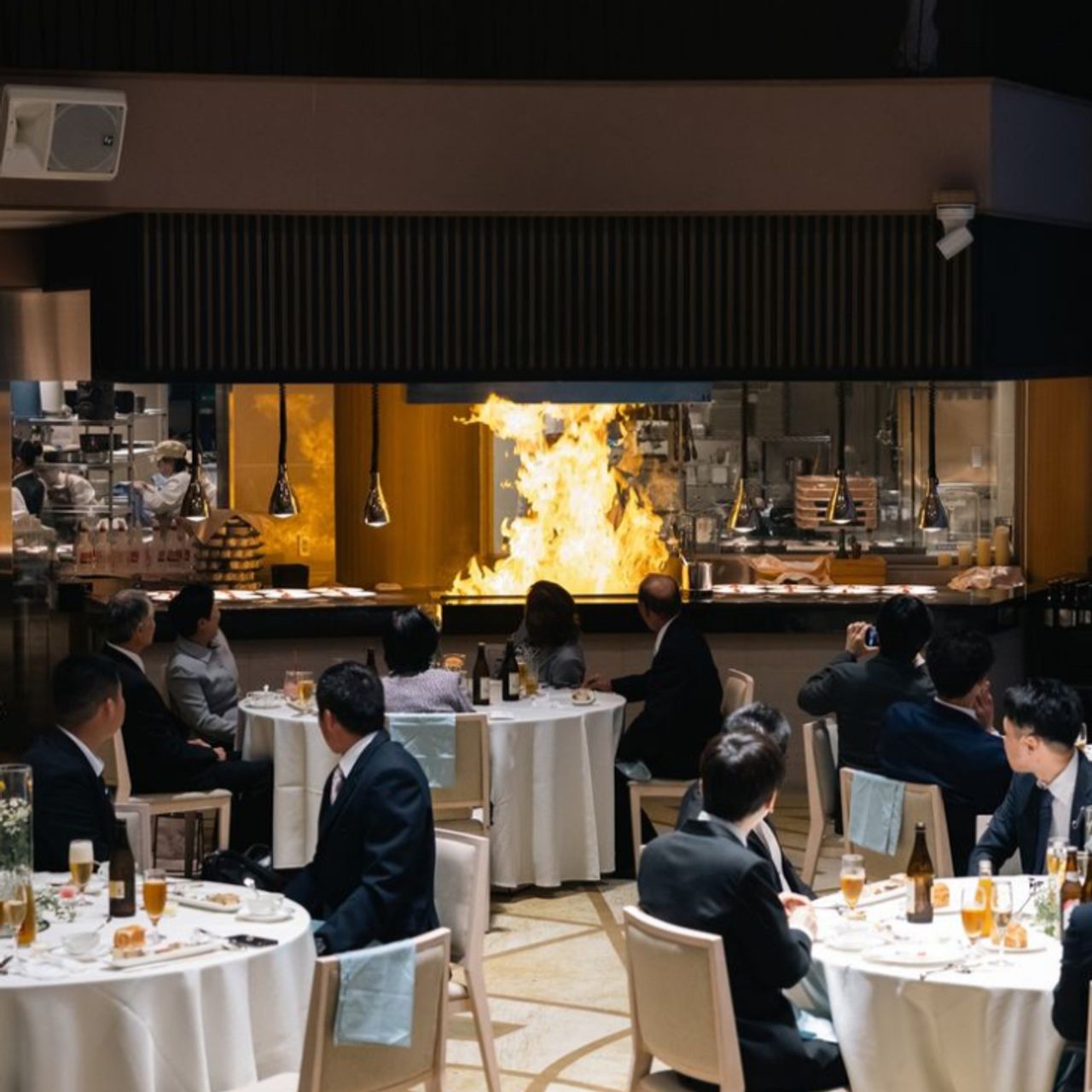また、私たち夫婦は『食べる』ことが好きなので、会場の中にライブキッチンやフランベの演出があることに驚きと魅力を感じました!