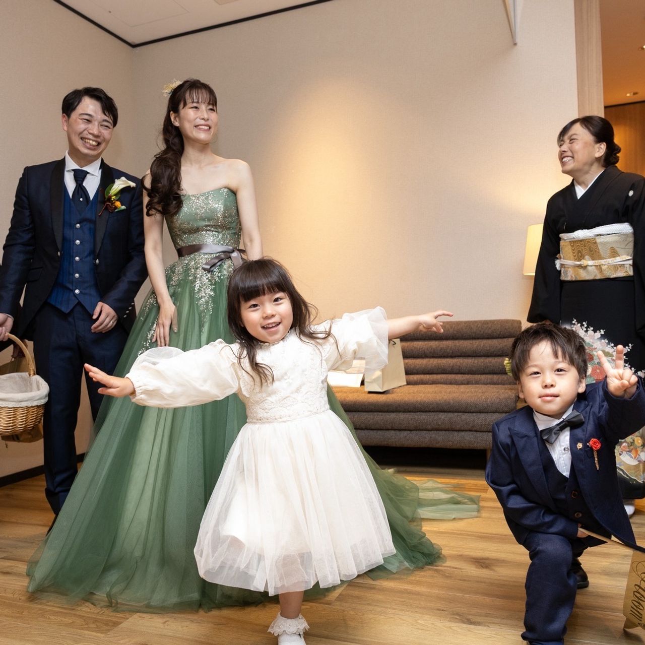 また、娘と息子には、リングボーイ・リングガールをしてもらっています。打ち合わせ時からプランナーさんには子どもたちとコミュニケーションをとっていただき、人見知りの2人も懐いてくれました。プランナーさんのおかげで、本番もスムーズにリングボーイ・リングガールを務めてくれてよかったです。