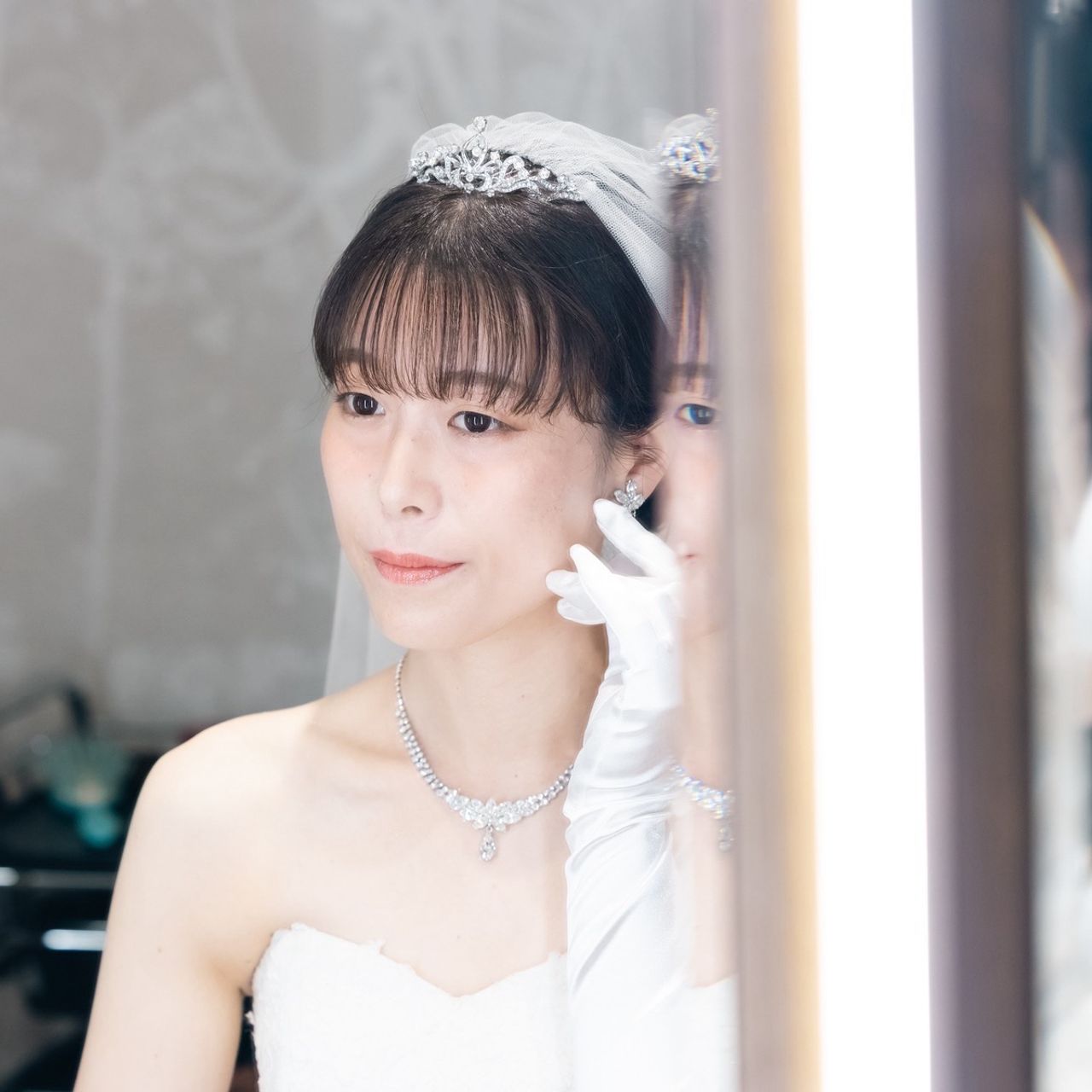 ウェディングドレスでは、式場で選んだイヤリングとネックレスを身につけました。