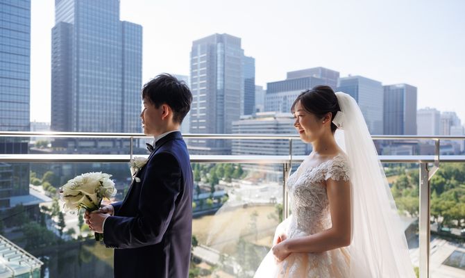 パレスホテル東京(PALACE HOTEL TOKYO)は高校生の頃に広告を見て、ずっと憧れていた場所でした。実際に見学してみて、チャペルの大きな窓、葵西の大きな窓から見える景色、明るい雰囲気が好きでやっぱりここだとなりました。