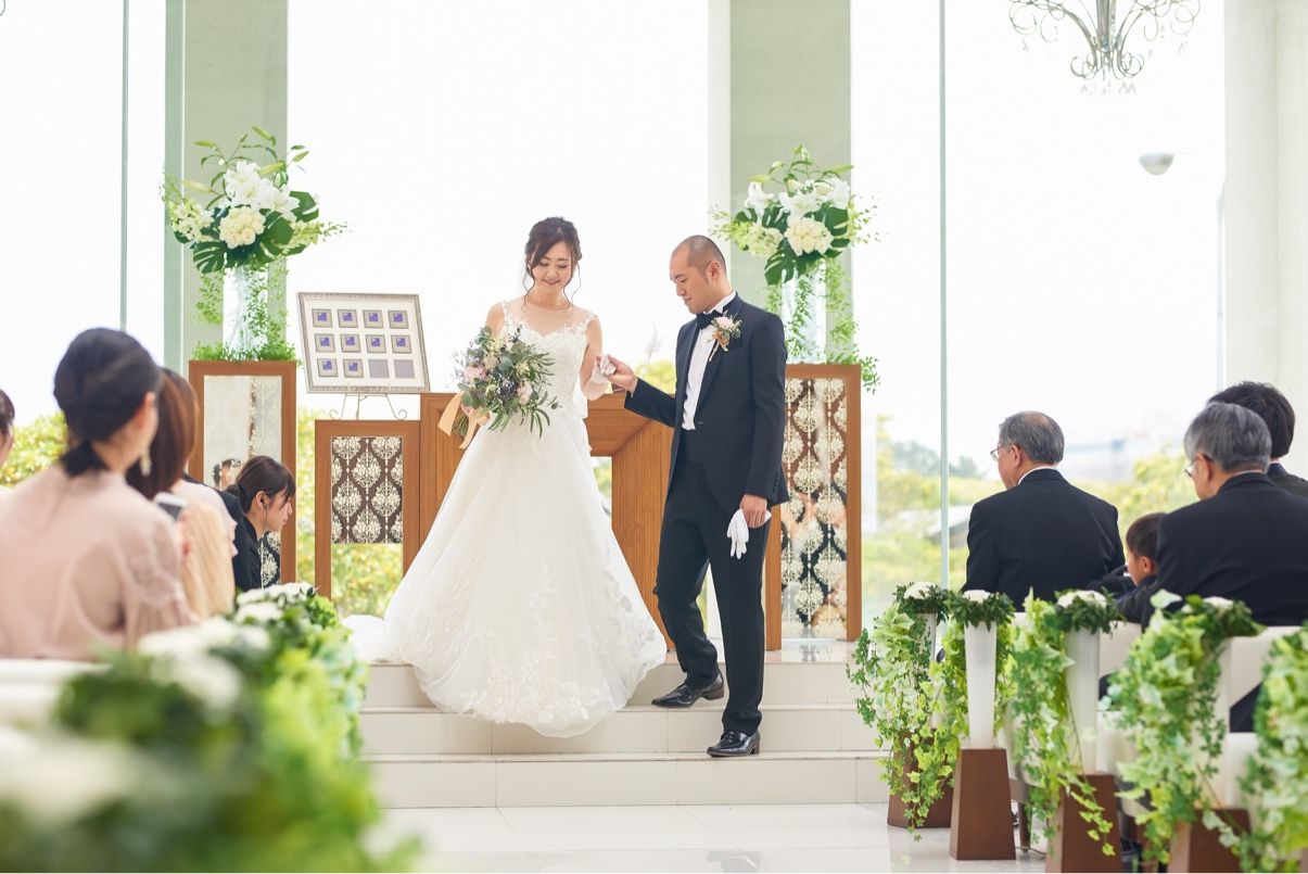 両親への手紙では泣かないつもりでいましたが、母親の泣いている姿を見て泣いてしまいました。挙式の入場で最初にゲストみんなの顔が見えた時も嬉しい気持ちになりました。