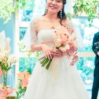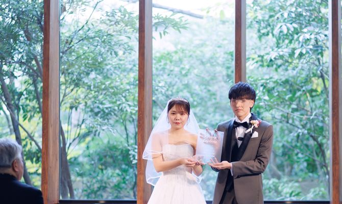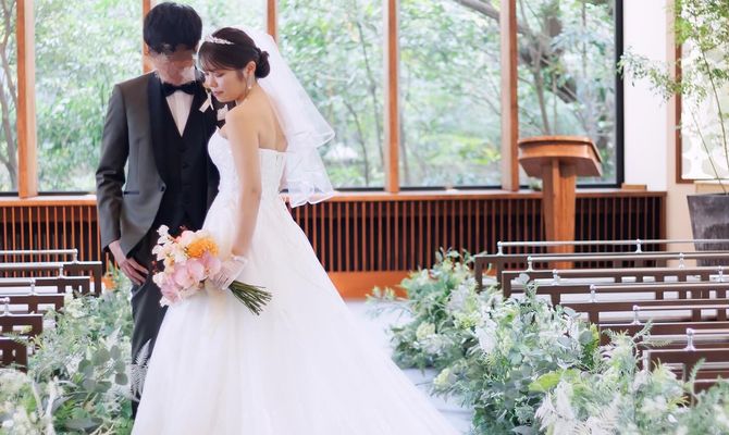 Hilltop Resort YAMANOUEさんを選んだ決め手は、令和のナチュラル婚を体現できる式場だと感じたからです。昔から福岡で愛されるリゾートホテルがリニューアルしてできた新しい式場で、今流行りのテキスタイルやチェア、小物の細部の感度がとても高く、どうしても堅くなってしまいがちな結婚式がより身近でオシャレに感じられました。