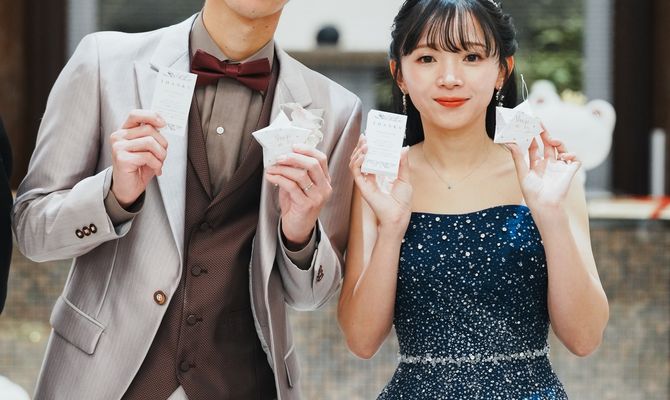 そのため、待ち時間もゲストを飽きさせないよう、2人の共通の趣味である「謎解き」を自作して挑戦してもらったり、ゲストから評判の良いケーキビュッフェを用意したり、サプライズ花火をあげたりしました。