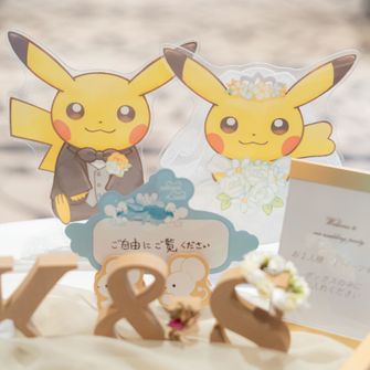 披露宴では雰囲気をガラリと変え『ポケモンいっぱいで楽しく』をテーマに、ナチュラルな装飾にしました。