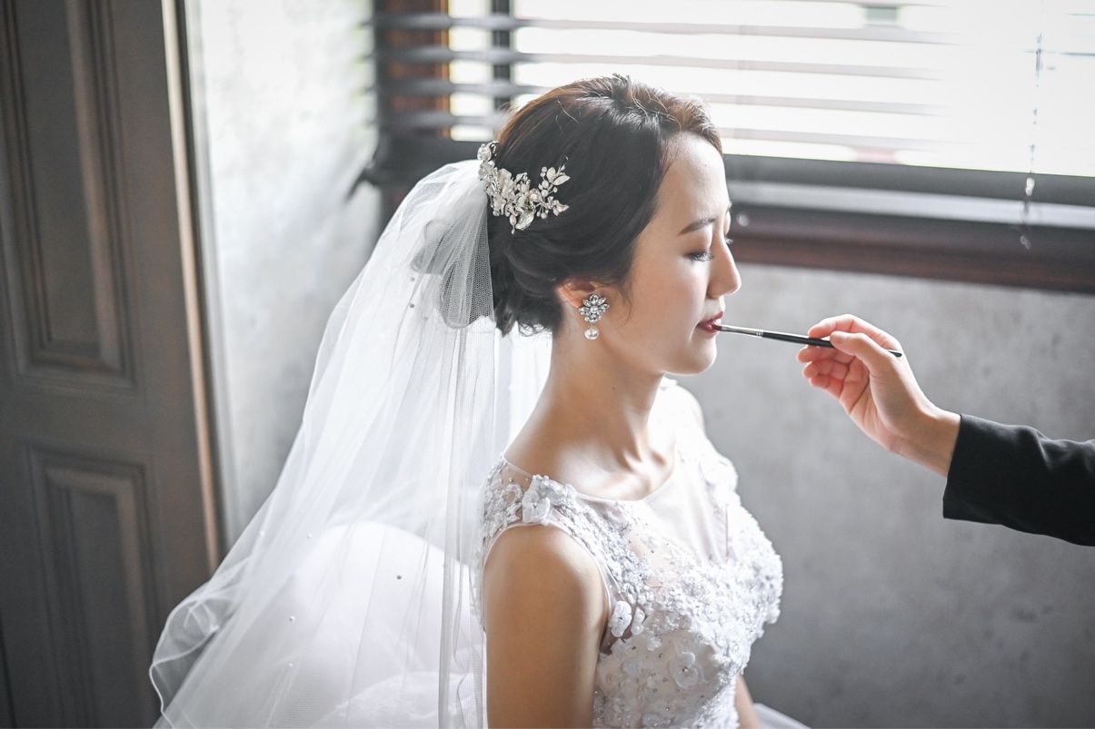 メイクは式場の提携先にお願いしました。肌のツヤ感を大切にしながらアイメイクはナチュラルに、眉毛とリップはハッキリするように仕上げてもらいました。睫毛パーマにするかマツエクにするか悩みましたが、涙もろいこともあり前日にいつも行っているサロンでマツエクを120本をつけてもらいました。