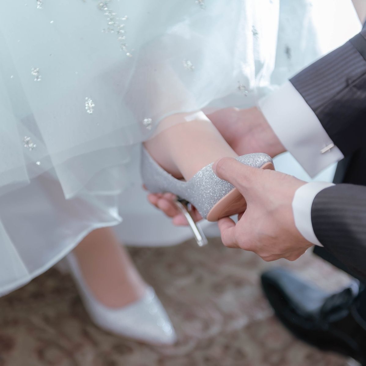 アクセサリー同様、ドレスの素材に使われているものと似たものや、表現したい雰囲気に合うものをそれぞれ選んでいます!