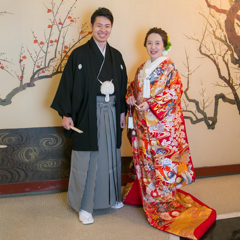 ゲストからも和装の白と赤の色がとても映えていたと言ってもらいました。