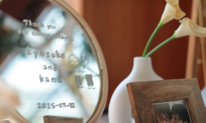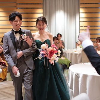 テーマは自分たちもゲストも気張らず、アットホームに楽しめる同窓会のような式です。木に囲まれた幻想的なチャペル、温かい雰囲気の披露宴会場に一目惚れしました。また、鶴見ノ森 迎賓館は1日2組のみの案内でかなり自由度が高いことも決め手になりました♡
