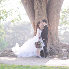 真夏婚だったので、なるべくゲストの方に負担にならないようにしつつ、真夏婚ならではの元気いっぱい笑顔溢れる式にしました。