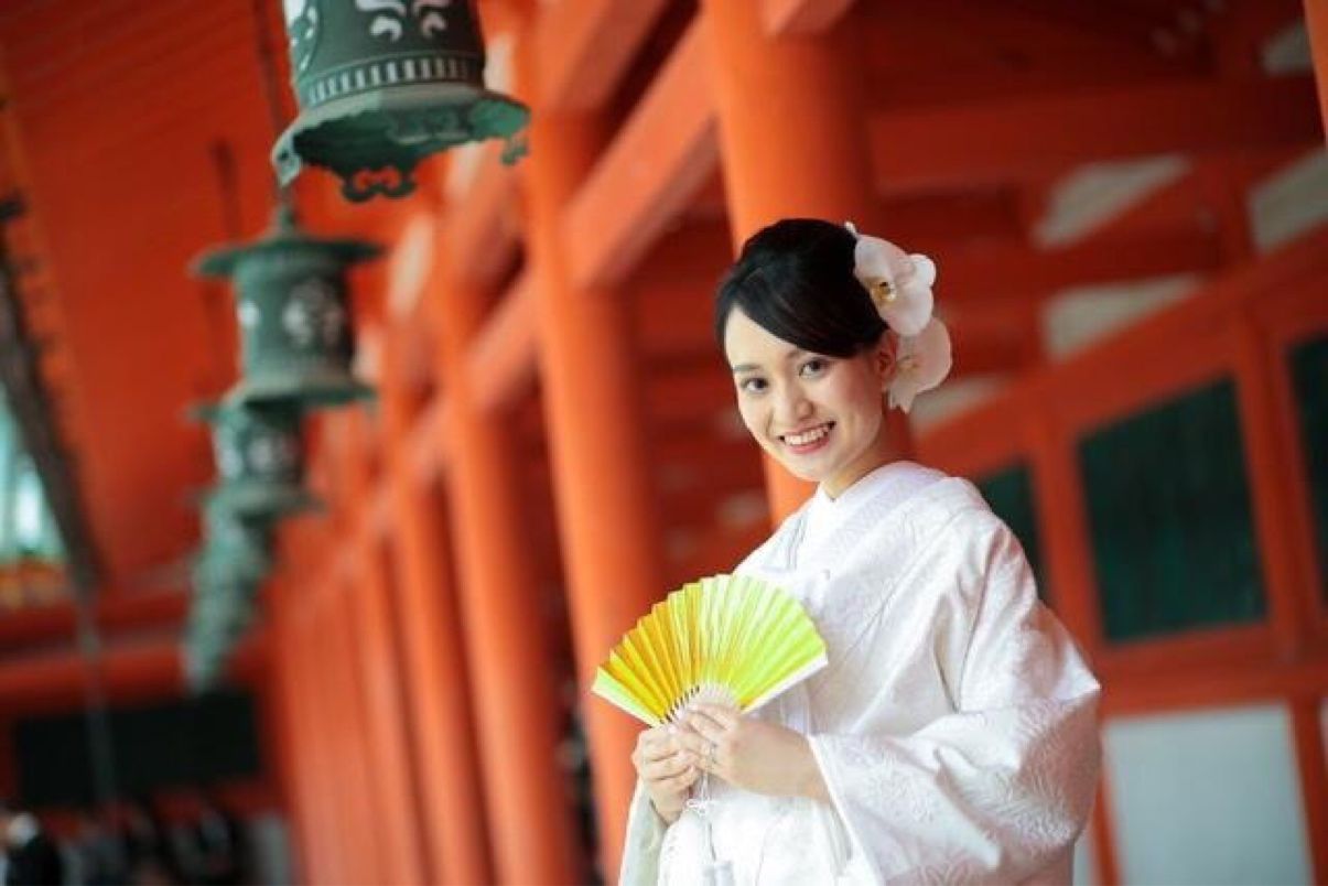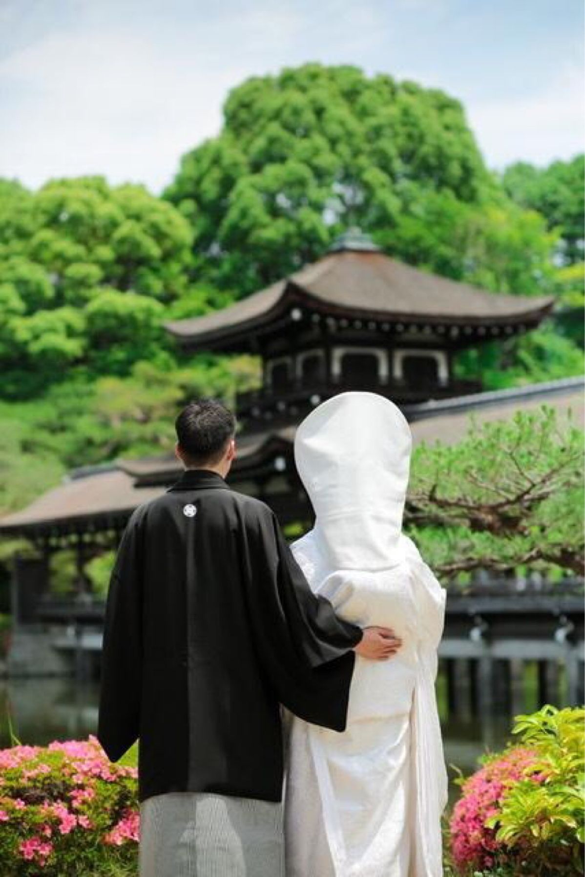 厳かな雰囲気の中、日本人として和式の結婚式を挙げられて良かったです!平安神宮の朱色の建物、歴史を感じる庭が本当に美しく、ここで挙げられる喜びを噛みしめました。