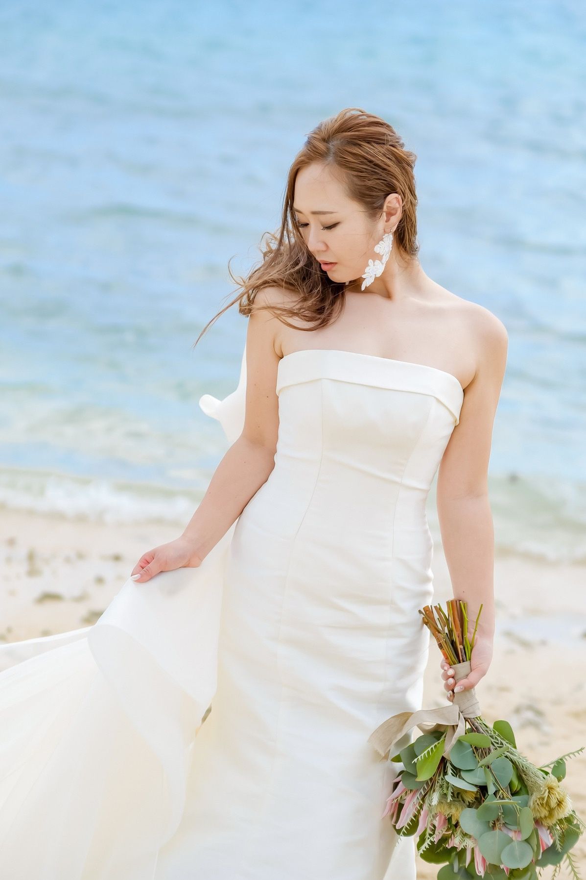 ・挙式中はパールの一連の長めのピアスで撮影中は大きめの刺繍のピアスです。