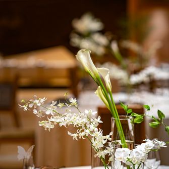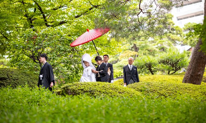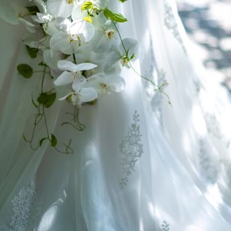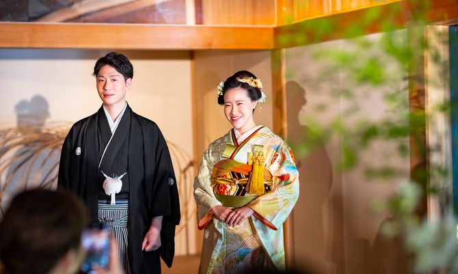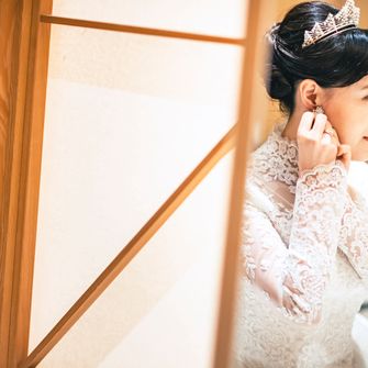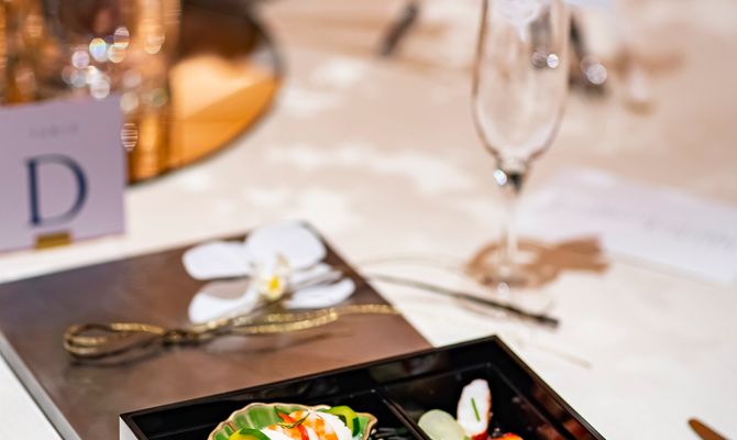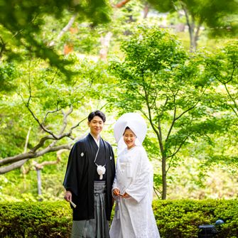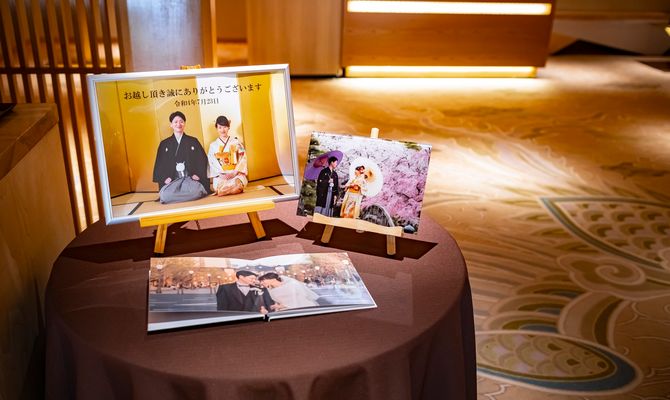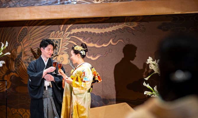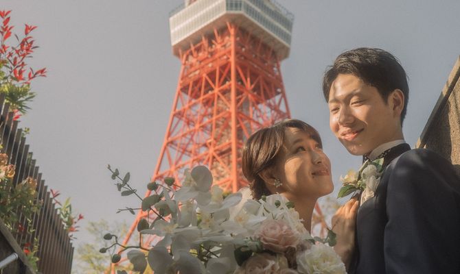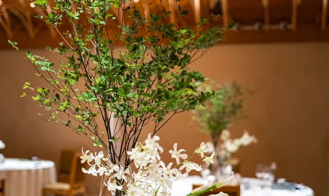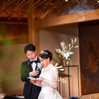 両親が結婚式を挙げたと話を聞き、写真を見せてもらってから私の憧れの式場になっていた八芳園。両親が式を挙げた時から変わらない美しい日本庭園と、スタッフの方々のホスピタリティ溢れるおもてなしに満ちた大好きな式場です。結婚式のテーマは装花にも使った大好きな胡蝶蘭の花言葉『幸福が飛んでくる〜感謝の気持ちを込めて〜』です。今までお世話になった大切なゲストへの感謝の気持ちと、これからも末長くお付き合いしていけたらという気持ちを込めました。