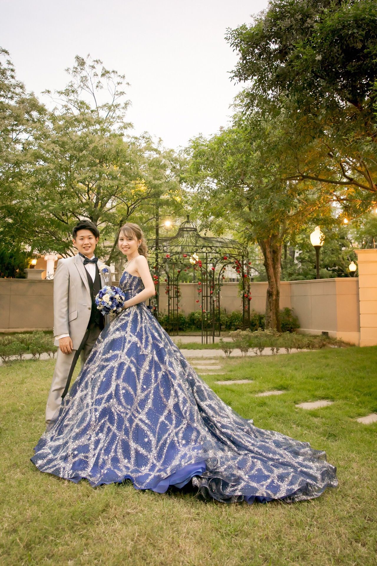 ウェディングドレスとガラッと雰囲気を変えたかったので、濃い色のネイビーに惹かれました。顔写りもパッと華やかになり、ラメもキラキラしていて動くときやライトに映えると思い、このドレスを選びました。