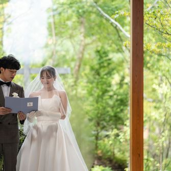 ララシャンス 博多の森を選んだ決め手は、木のチャペルです。ドアが開いた瞬間から木の香りがして、天井が高いので開放的でしたし、見た目も可愛くて好みでした。