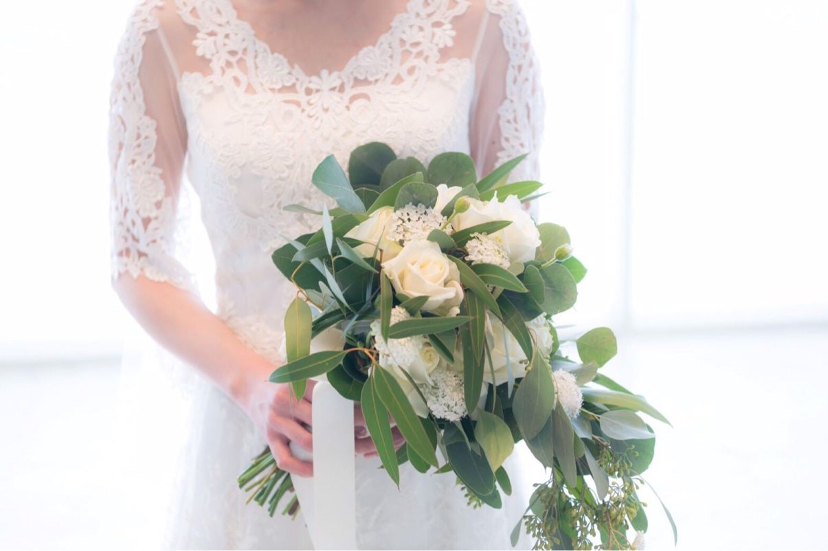 ・ブーケは、白の花と多めにグリーンの草を入れてもらいました。