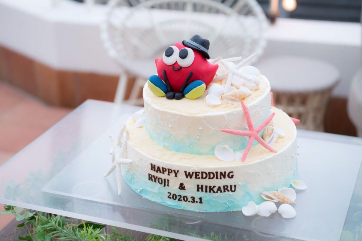 旦那が西島隆弘さんを好きだったため、リッピーをのせました。また海をテーマにしていたので、ヒトデや貝を乗っけてもらいました。