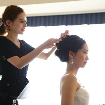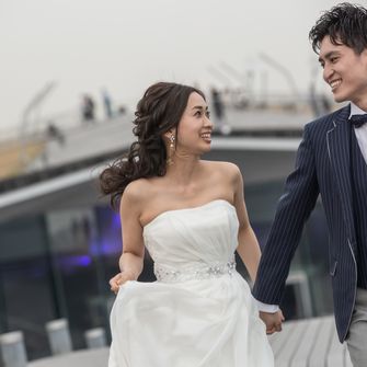 テーマは、ナチュラル マリンです! 新郎新婦は2人とも海が好きなので、海が見える会場を選びました。ナチュラルな雰囲気を出すために、高砂や装花はユーカリの葉っぱとバラを中心に飾りました。