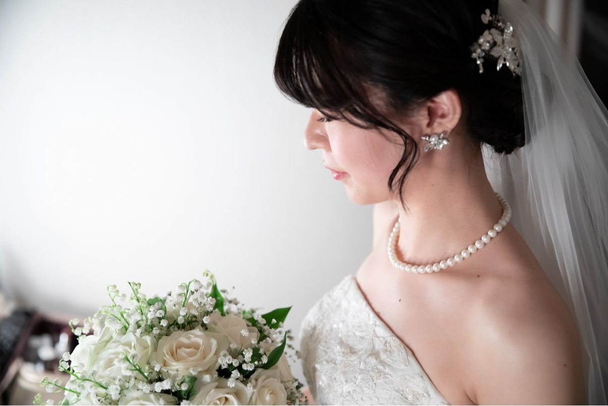 WD 挙式:パールやシルバー系のネックレス、ピアス