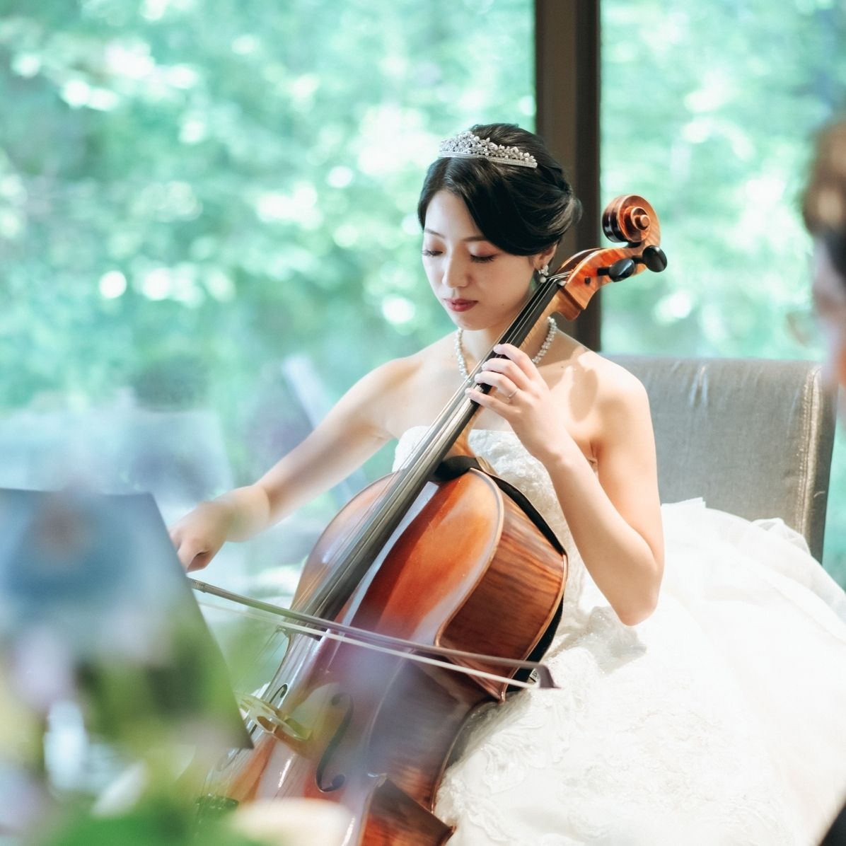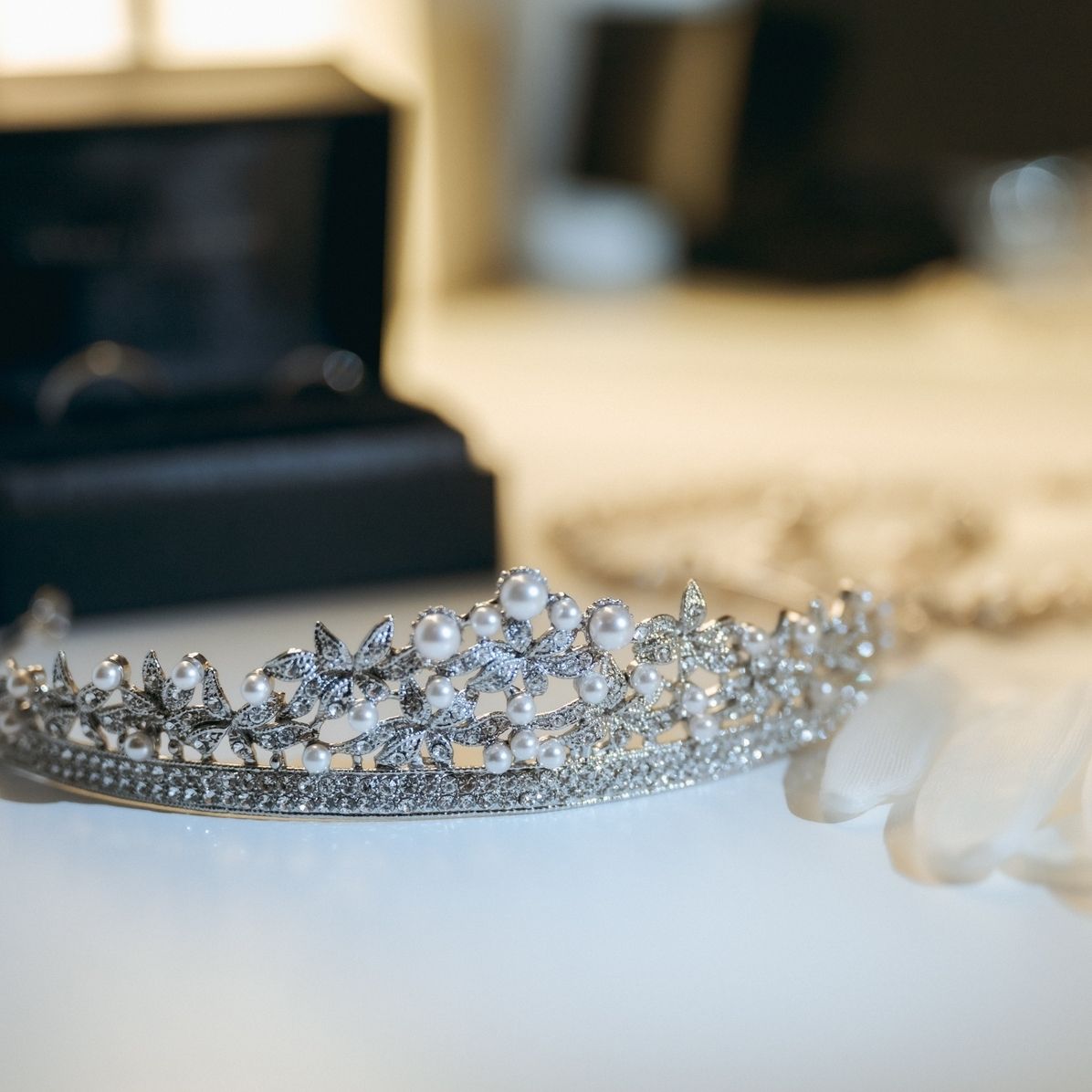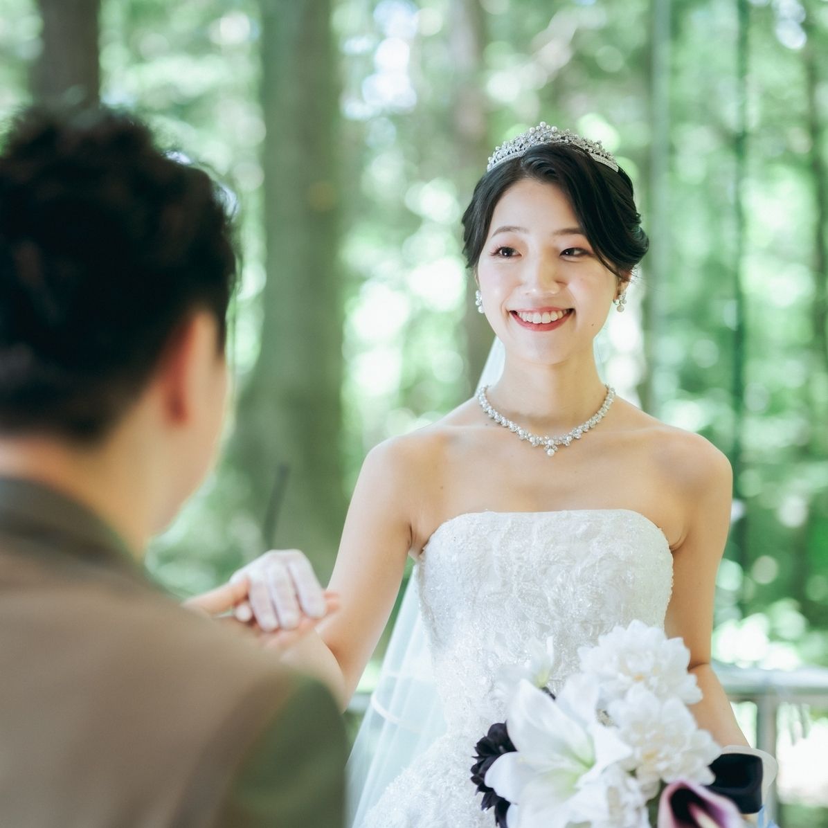 ティアラをつけることは一生に一度しかないだろうと思い、リーフモチーフのパールとビジューが美しいものをチョイスしました。