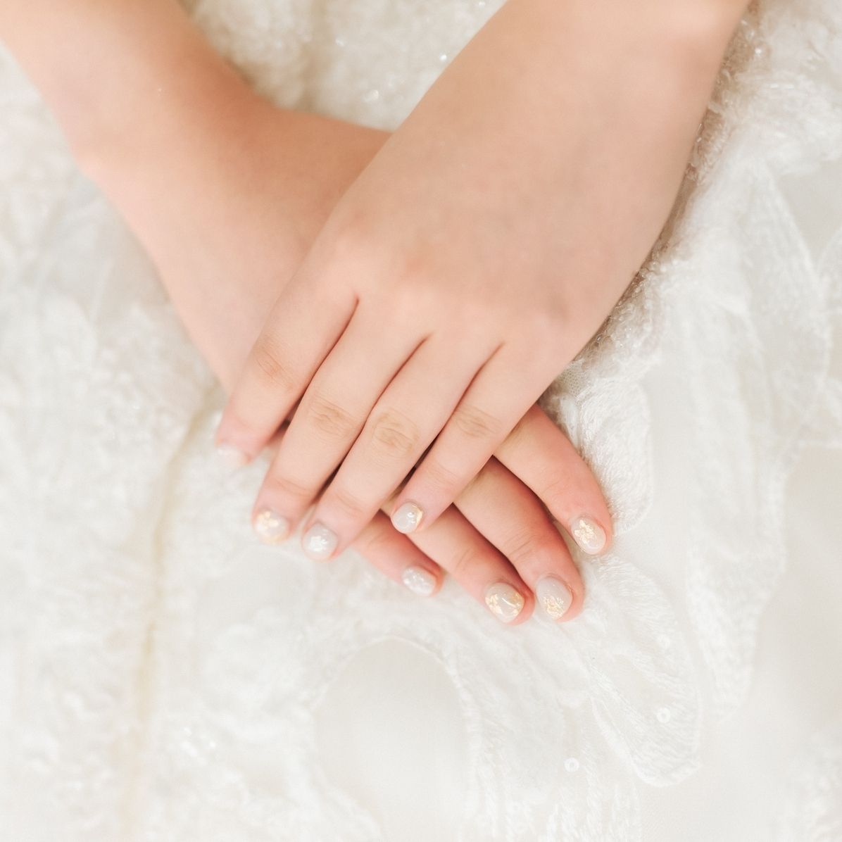 ナチュラルな白っぽい色をベースにパールとゴールドを散りばめてもらいました!