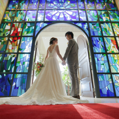 天気が悪い日でも光が差し込むような大きい窓ガラスに、入口のステンドグラスは、とても綺麗で感動しました!