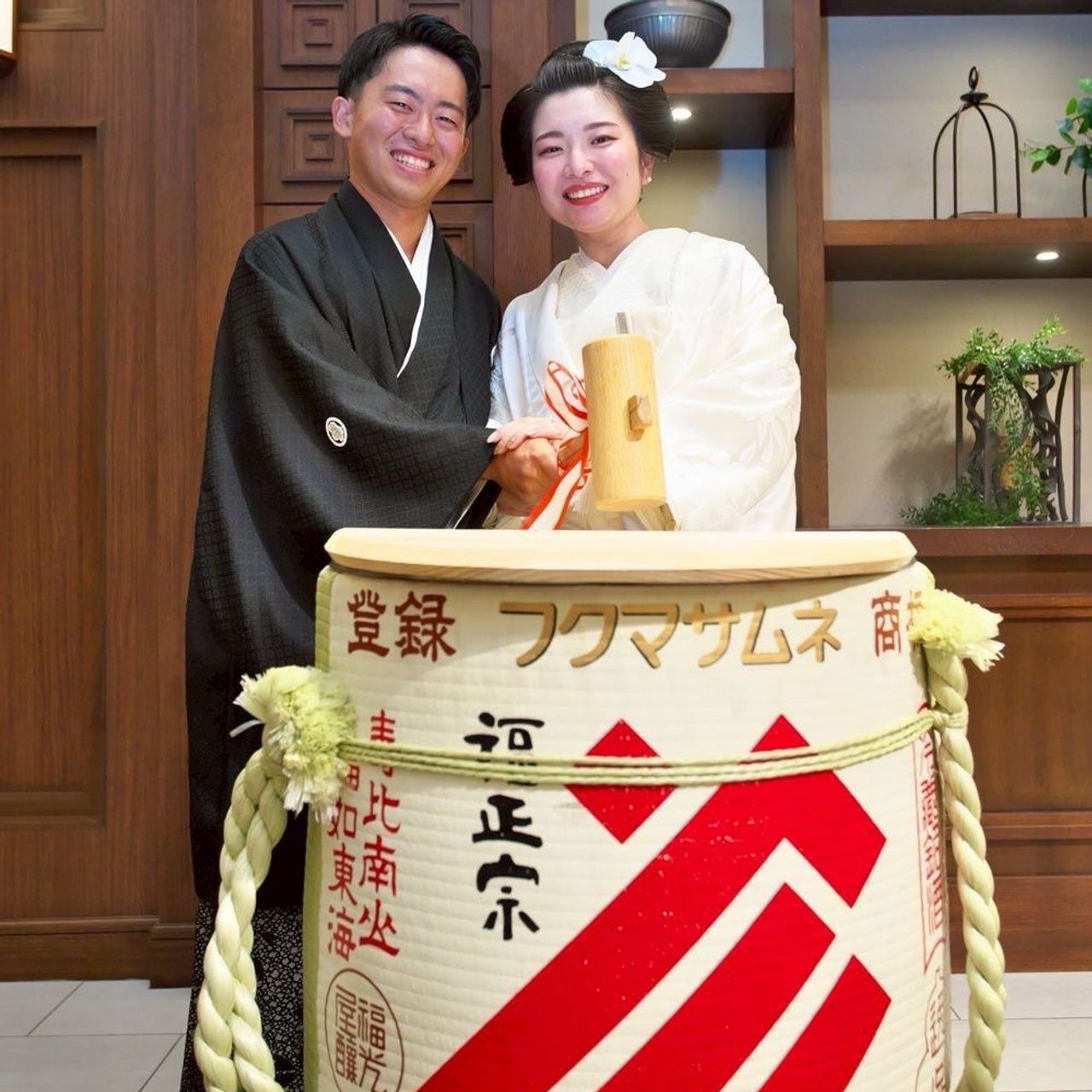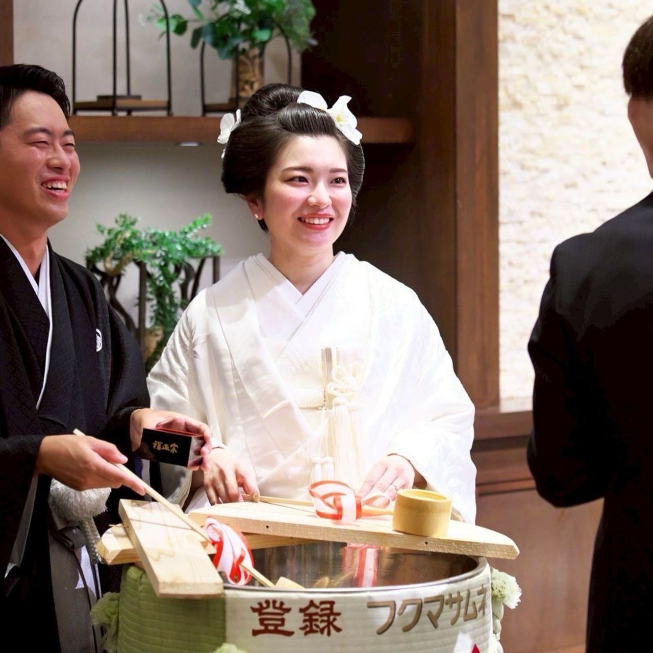 ウェディングケーキの代わりに、鏡開きを行いました。