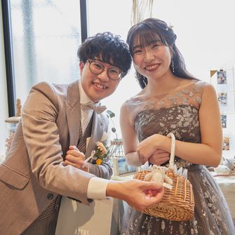 大好きなぬいぐるみ"フモフモさんのここもと一緒に過ごしたい"という想いと、お互いにナチュラルなテイストを好んでいたことから、テーマは「ここもと過ごすナチュラルウェディング」にしました。