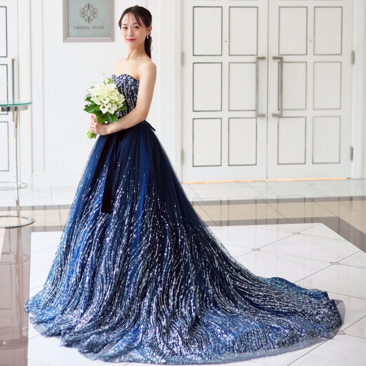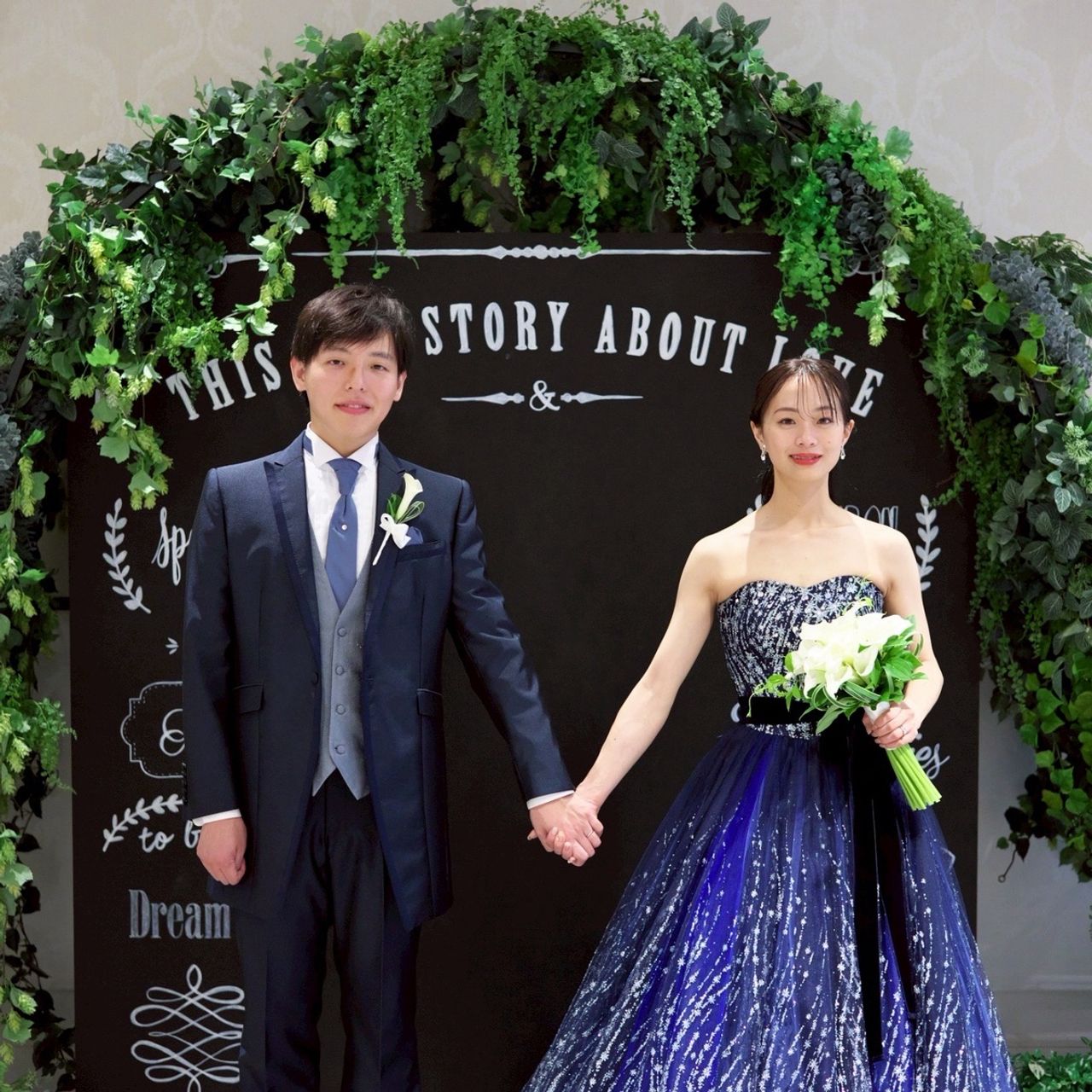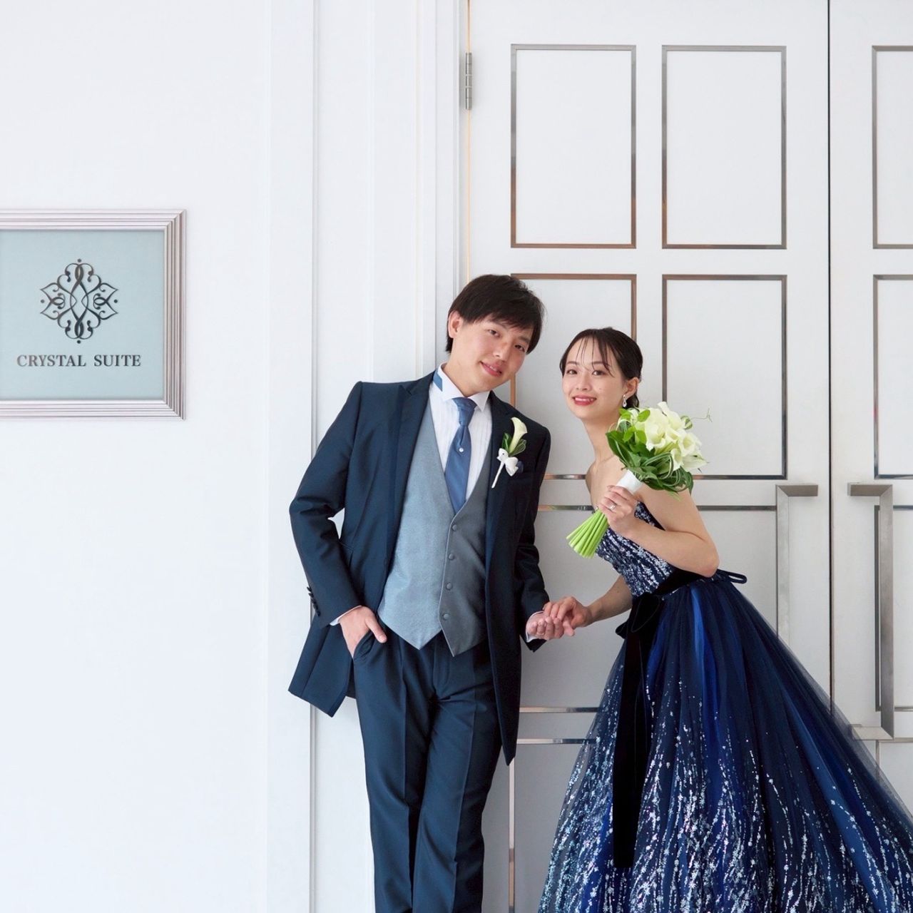 カラードレスは、統一感を出したかったことと、好きな色であることから旦那と同じ青色を選びました。