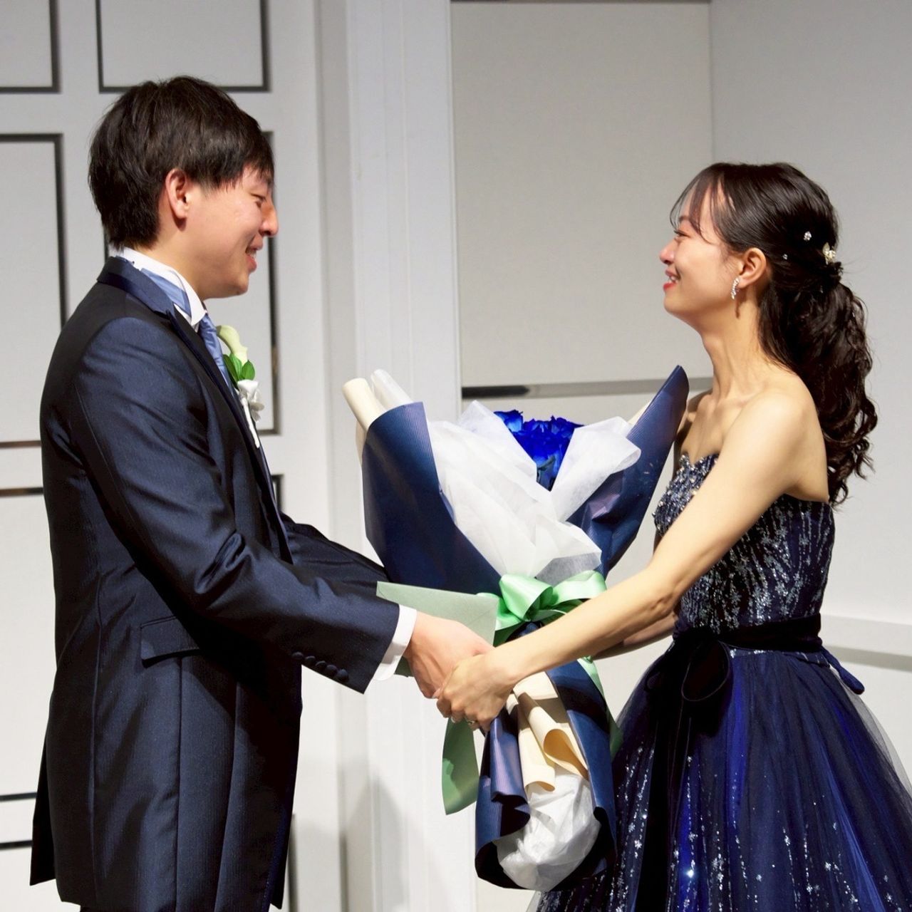 旦那がサプライズで、青いバラを準備してくれていたことです。一緒に準備を進めてきたのに、全く知らなかったので、当日はとても驚きました。