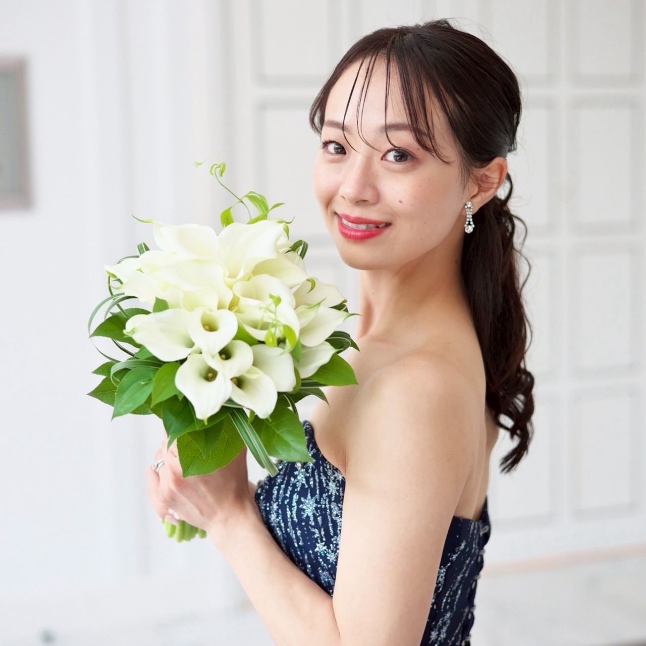 ブーケは、ウェディングドレスもカラードレスも白で統一しました。ドレスを引き立てるために、主張しすぎない白を選んでいます。