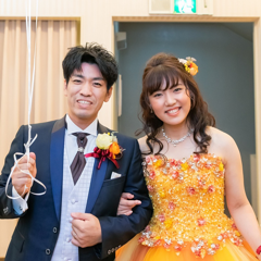 カラードレスが黄色×オレンジだったので、ハピネス・イズ・ヒアの曲で風船を持って入場するなど、演出面にもディズニーを取り入れました!