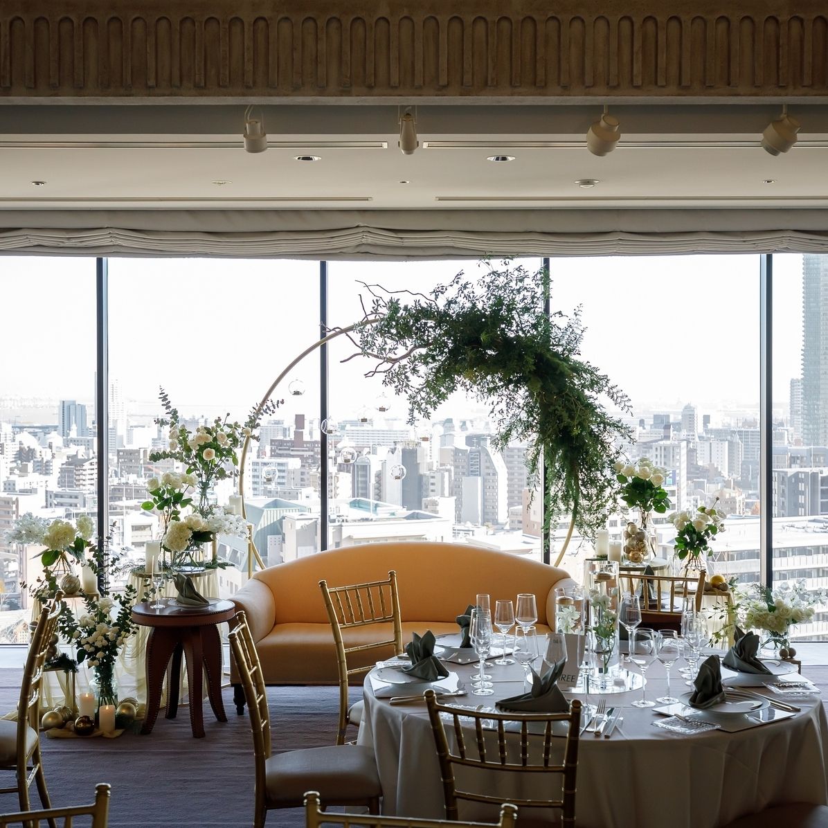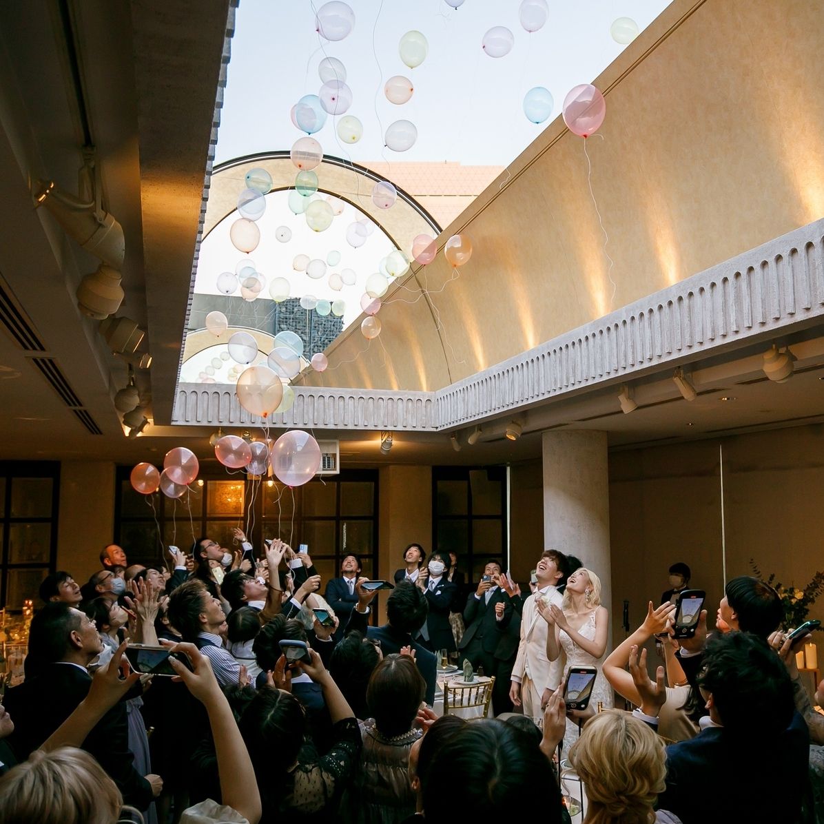 2階にあるミラージュヴィラのおすすめポイントは、壁一面がガラス窓になっているため部屋が明るく、神戸の景色を一望できるところです。ナイトウェディングだったのですが、夜景が本当に綺麗でした。また、天井が開くようになっていて、バルーンリリースの演出ができるのも特徴です。ゲストを驚かせることができ、とても楽しんでもらえて良かったです。