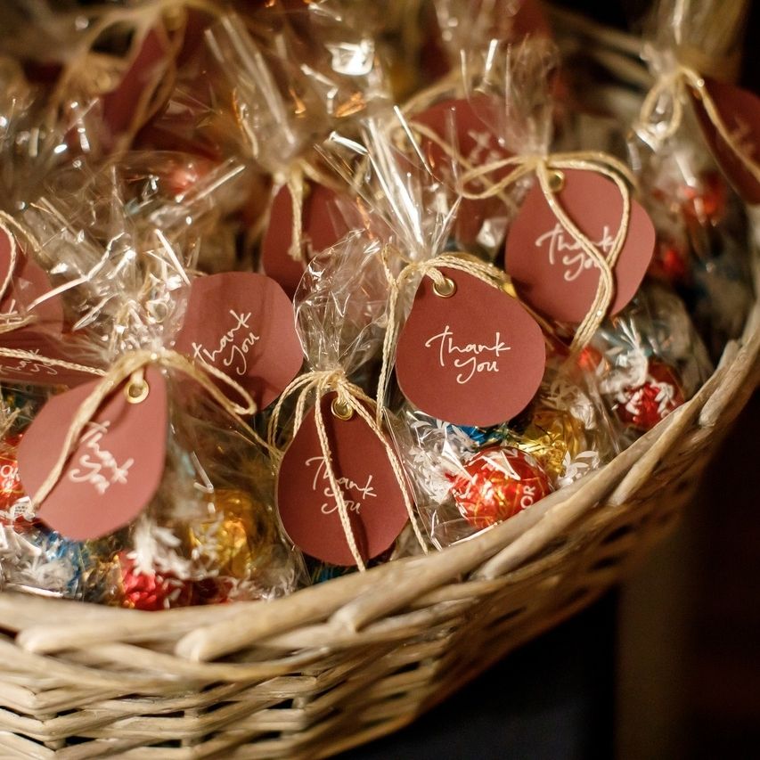 プチギフトはLindtのチョコレートを3個、包装してまとめたものです。コストコで購入したものをDIYで袋詰めしました。