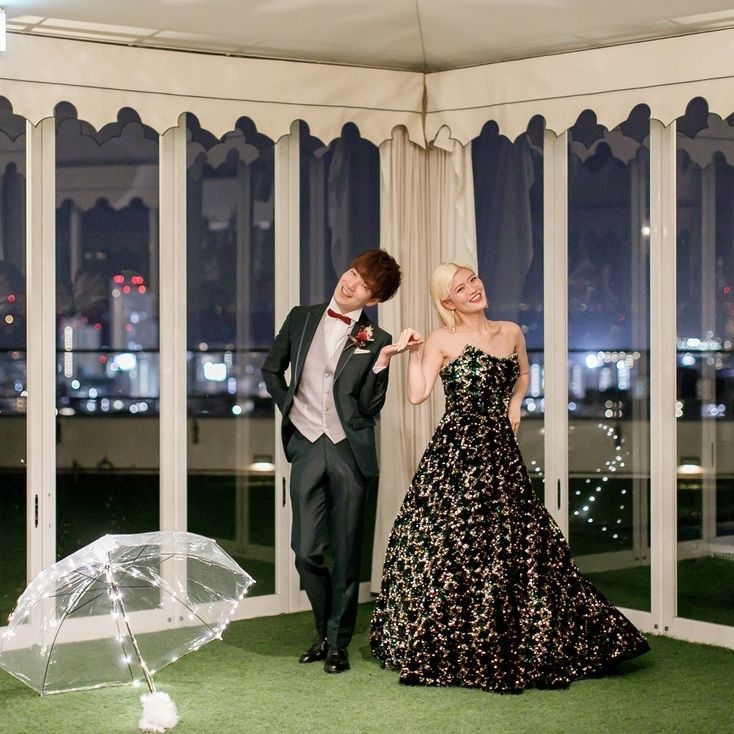 決め手は、ナイトウェディングにもってこいのキラキラ感です!何着も試着しましたが、このドレスに勝るものはありませんでした。テーマカラーのグリーンも含まれていて、運命を感じましたし、ブラックドレスでありながら、全く暗くないところにも惹かれました。生地がベロアで、冬婚にもぴったりだったため、即決しました。