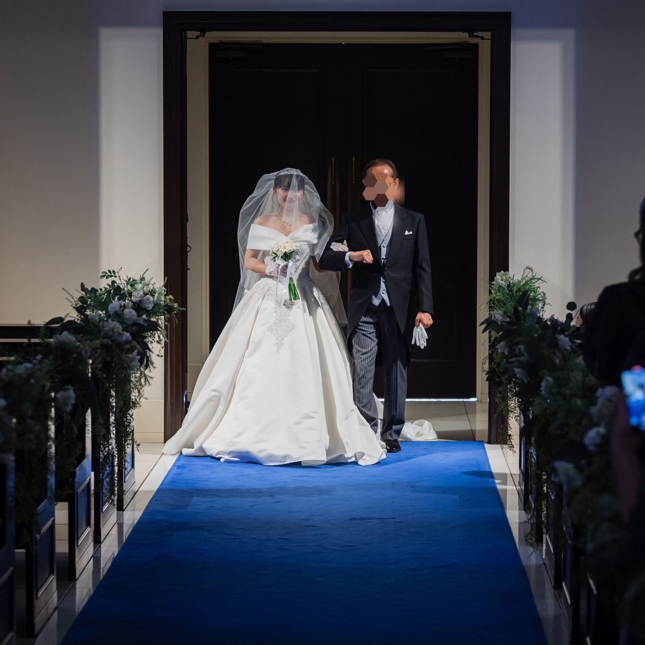 青色のバージンロードに惹かれて、この式場に決めました。ステンドグラスも綺麗で、バージンロードの長さもあり『ザ・チャペル』という空間がとても素敵です。
